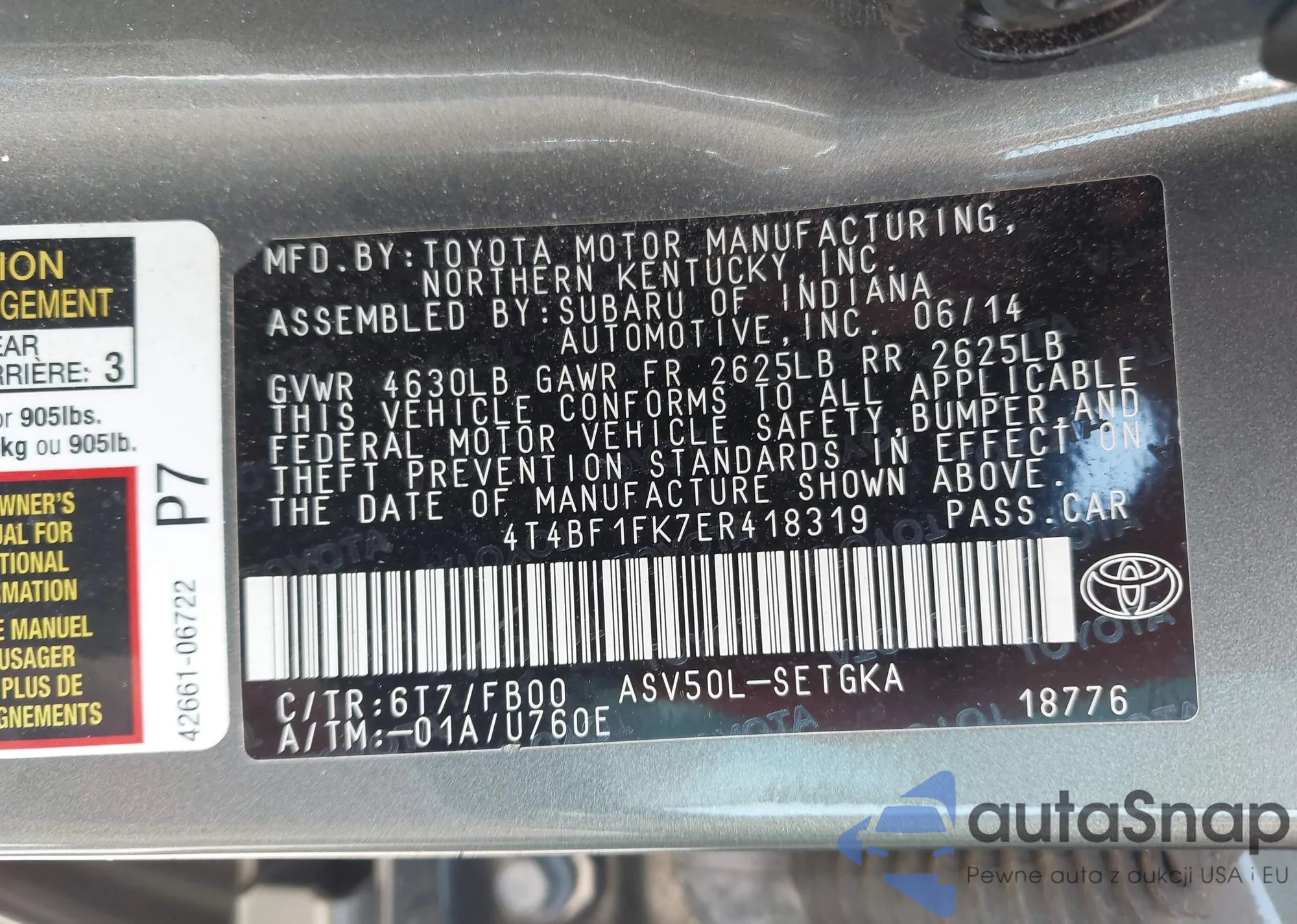 • VIN 4T4BF1FK7ER418319