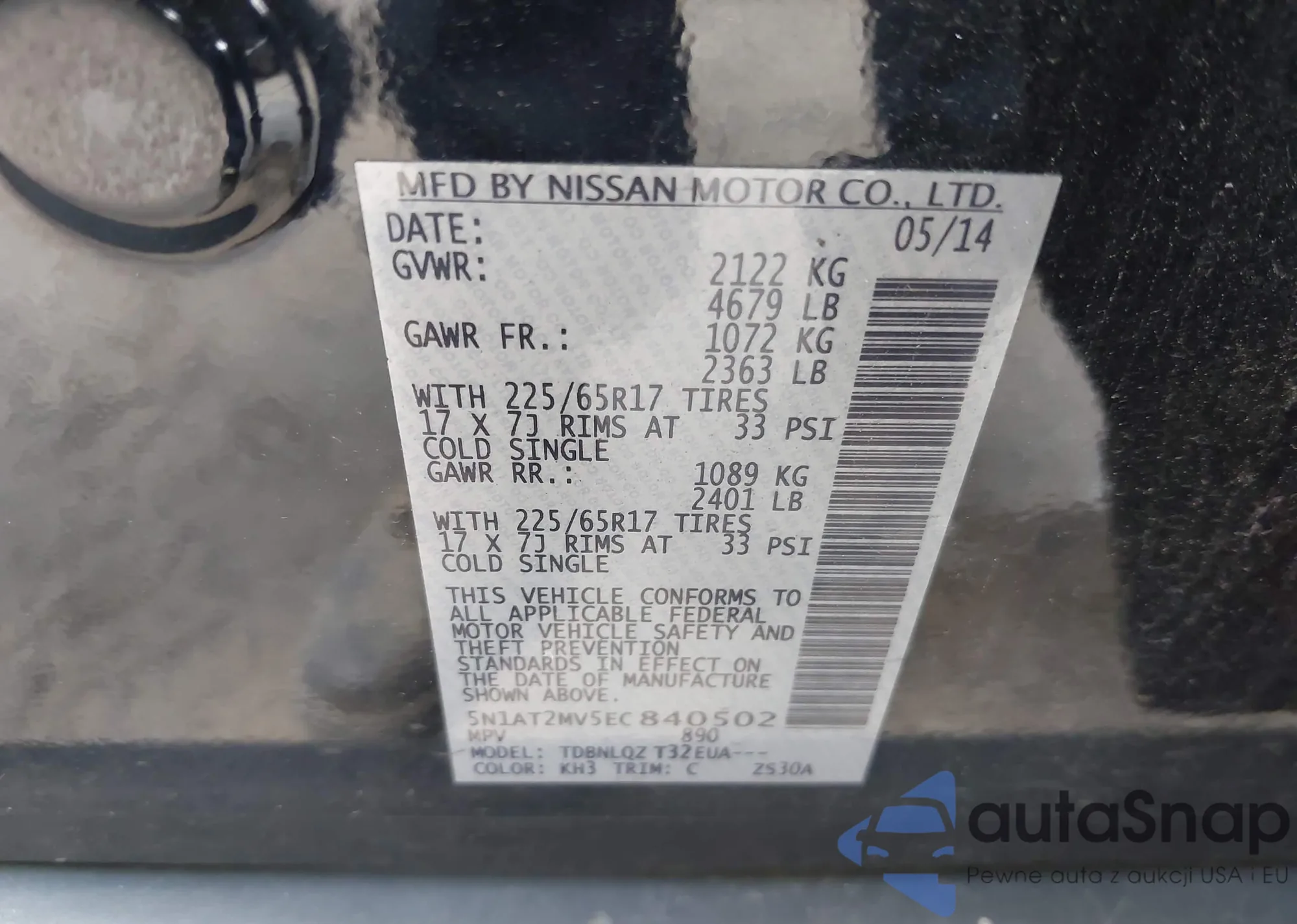 • VIN 5N1AR2MM1EC697442
