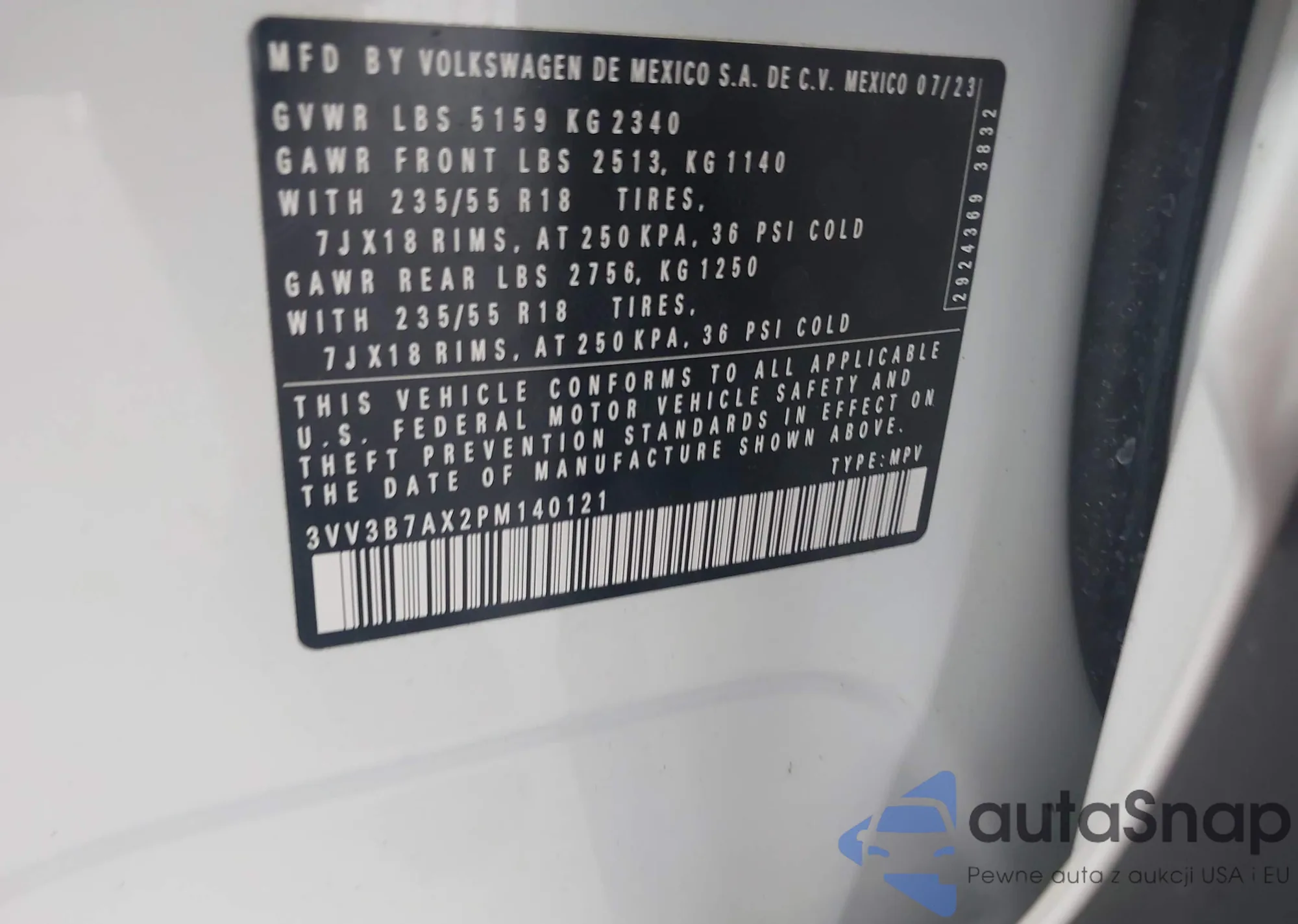 • VIN 3VV3B7AX2PM140121