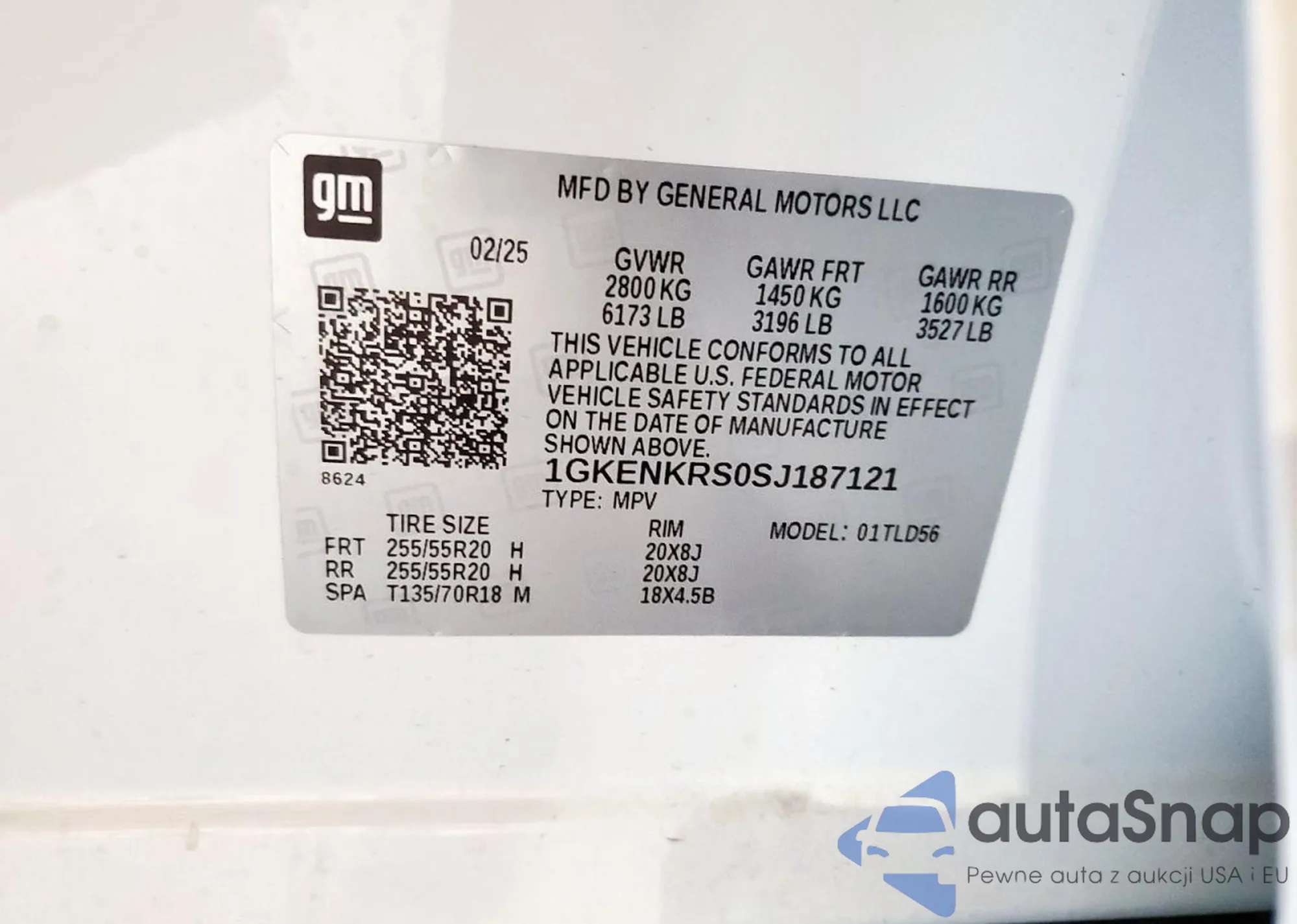 LOT: 68520175 VIN: 1GKENKRS0SJ187121