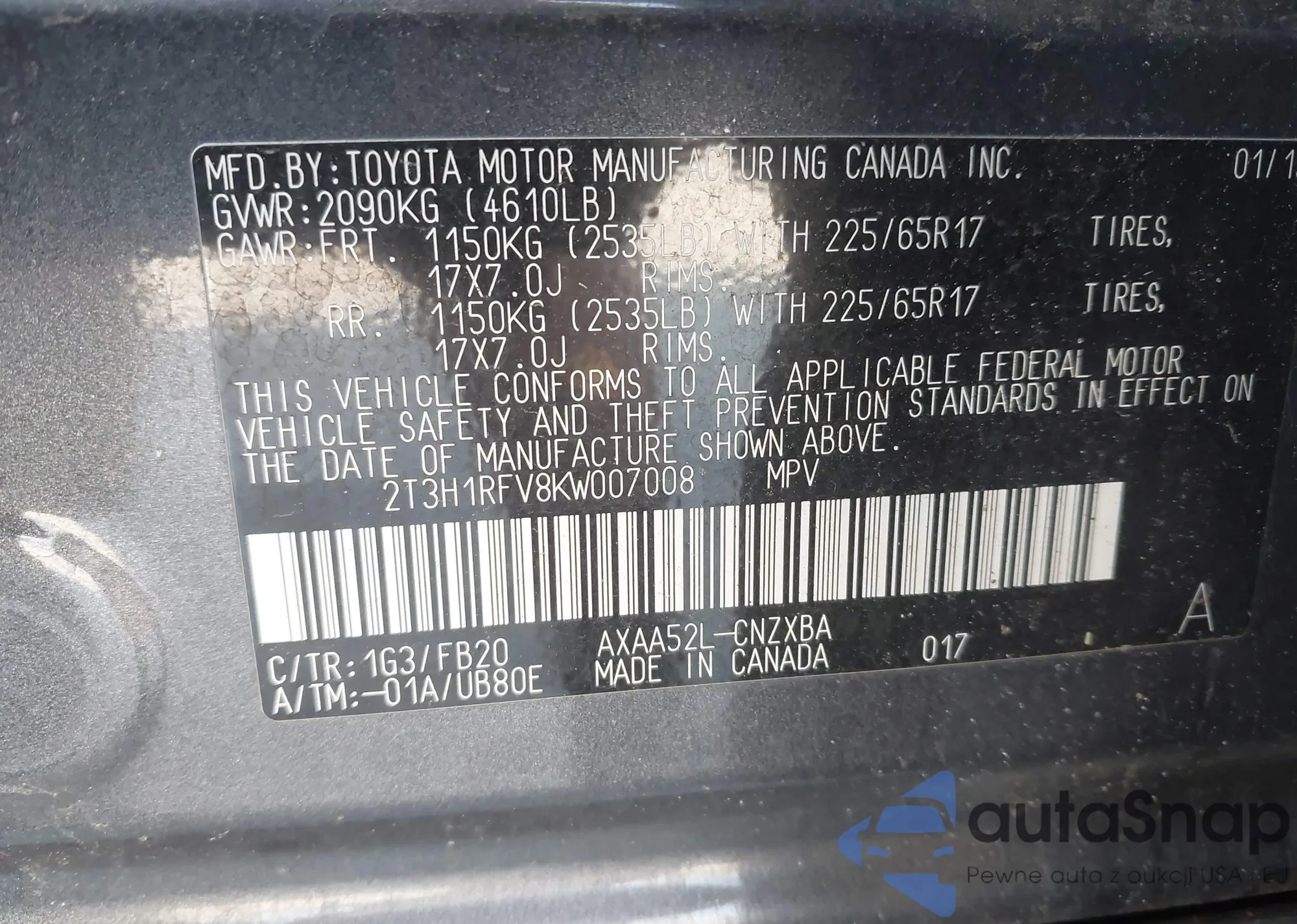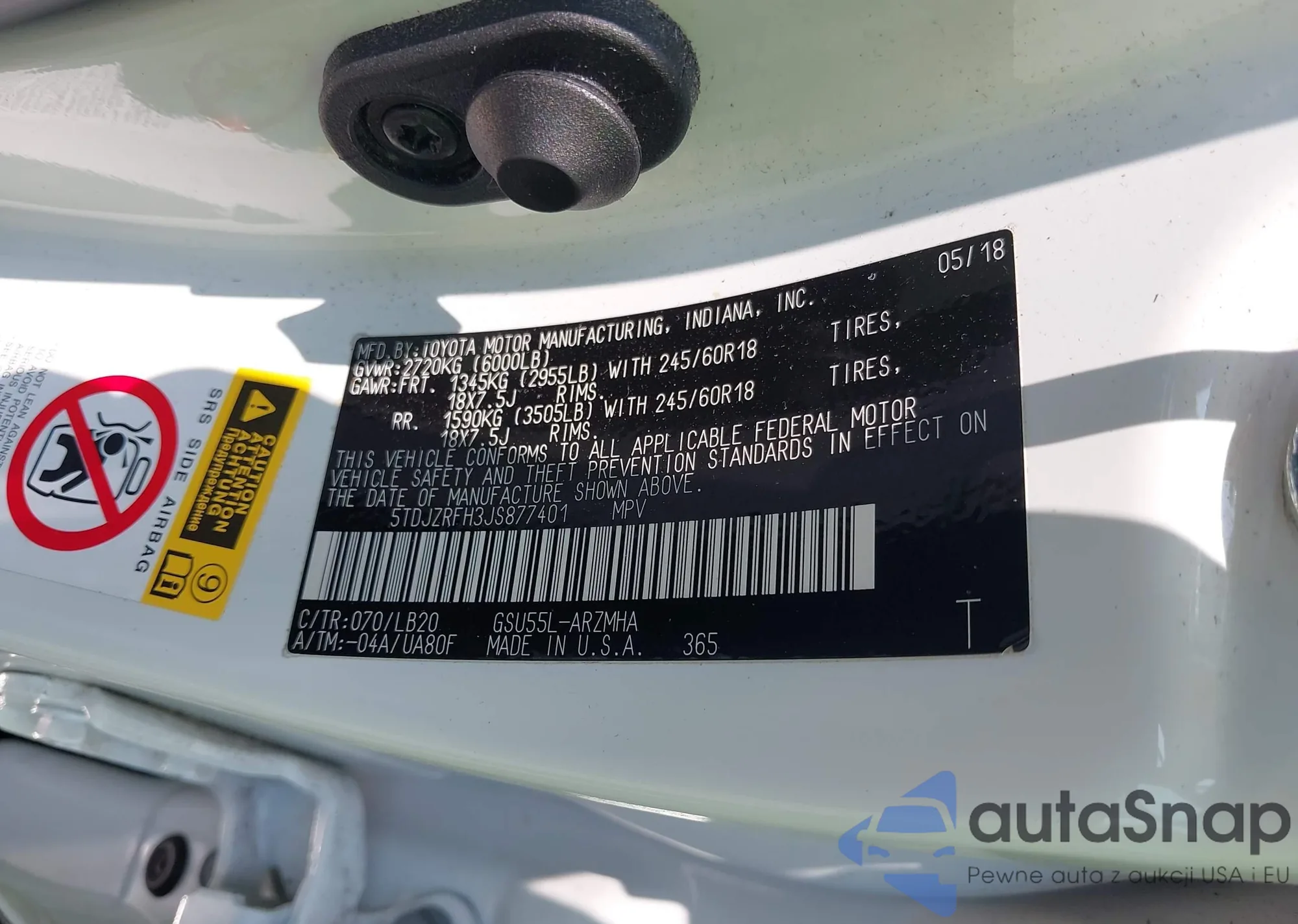 LOT: 42455503 VIN: 5TDJZRFH3JS877401