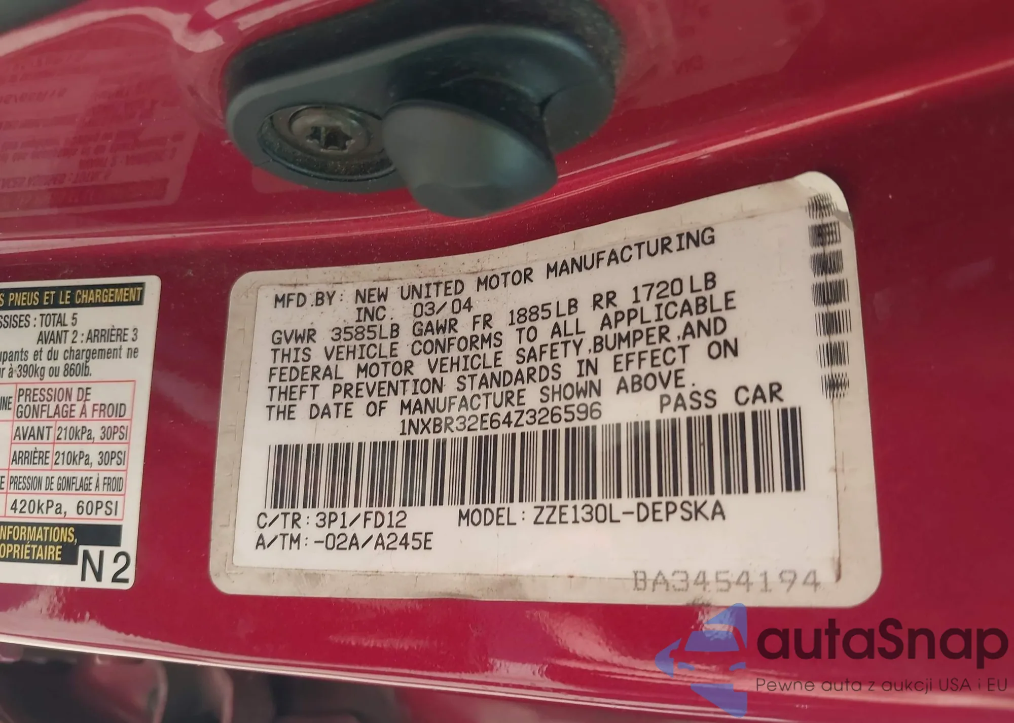 LOT: 41777699 VIN: 1NXBR32E64Z326596