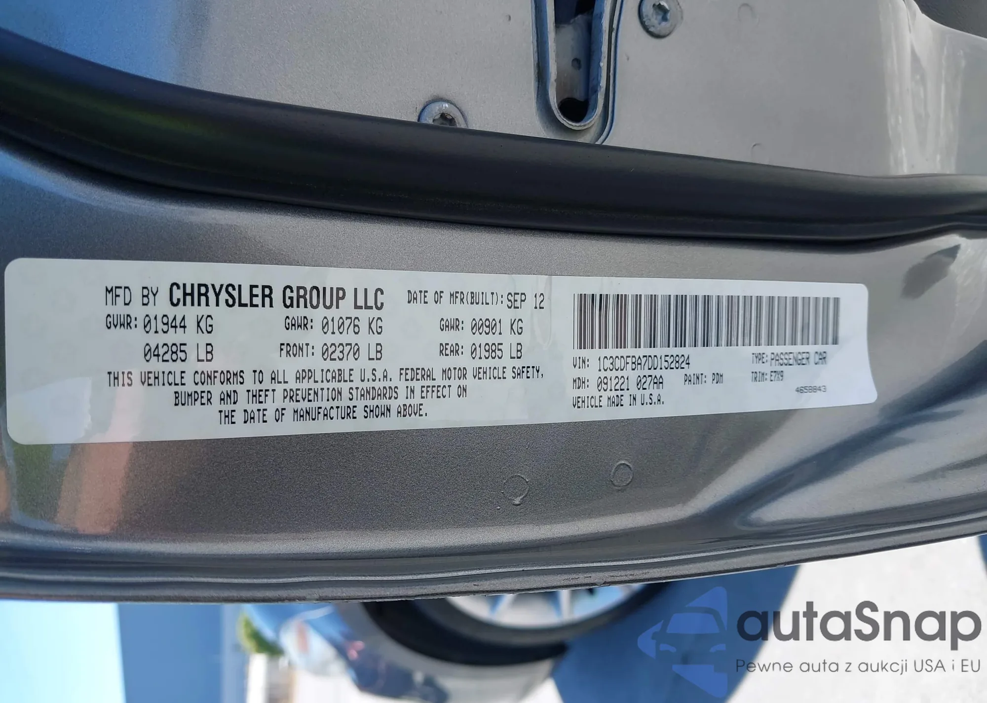 • VIN 1C3CDFBA7DD152824