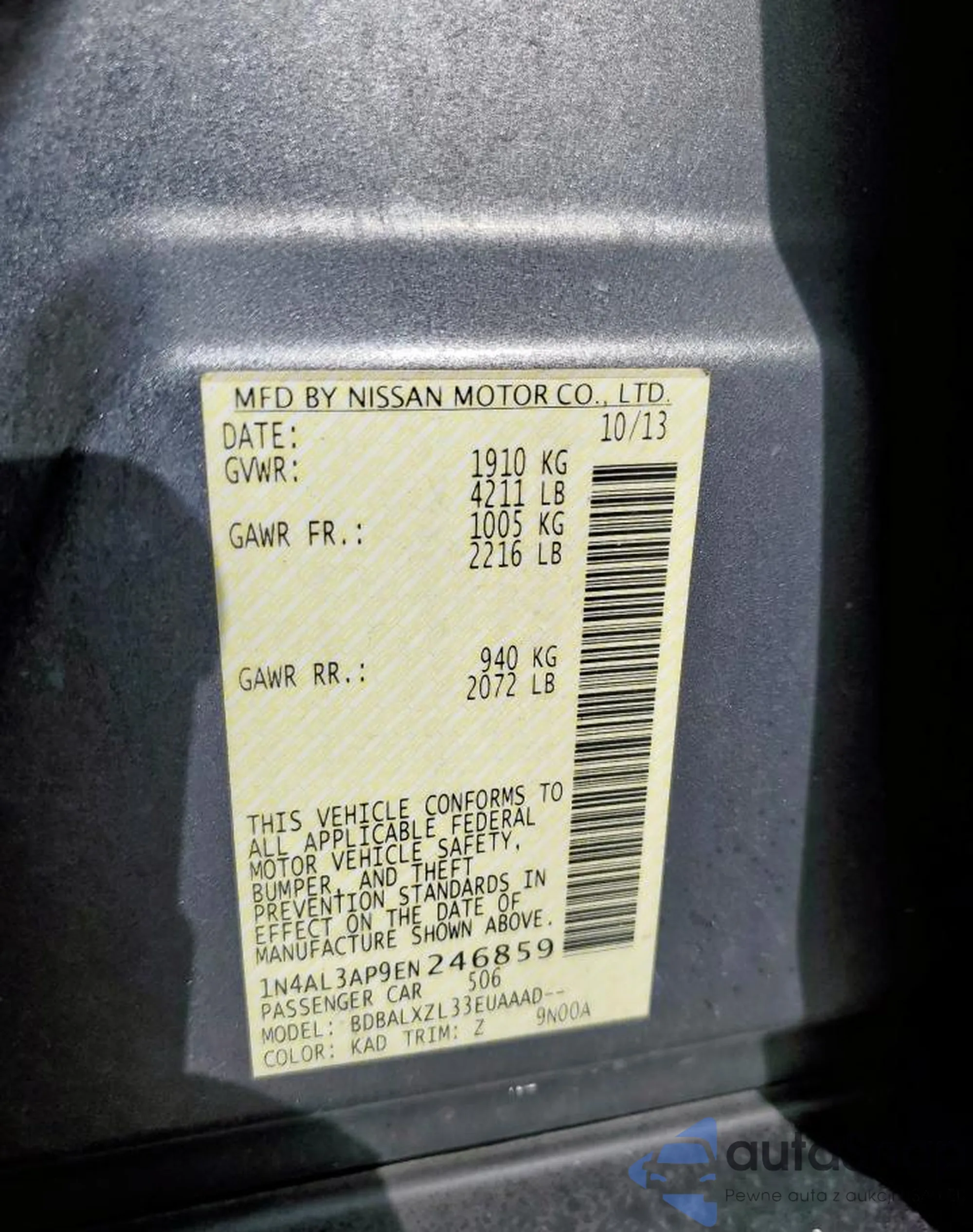 LOT: 63472035 VIN: 3N1AB7AP9KY270794