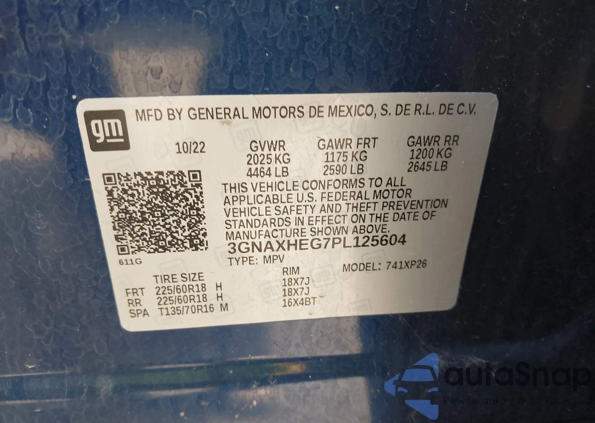 • VIN 3GNAXHEG7PL125604
