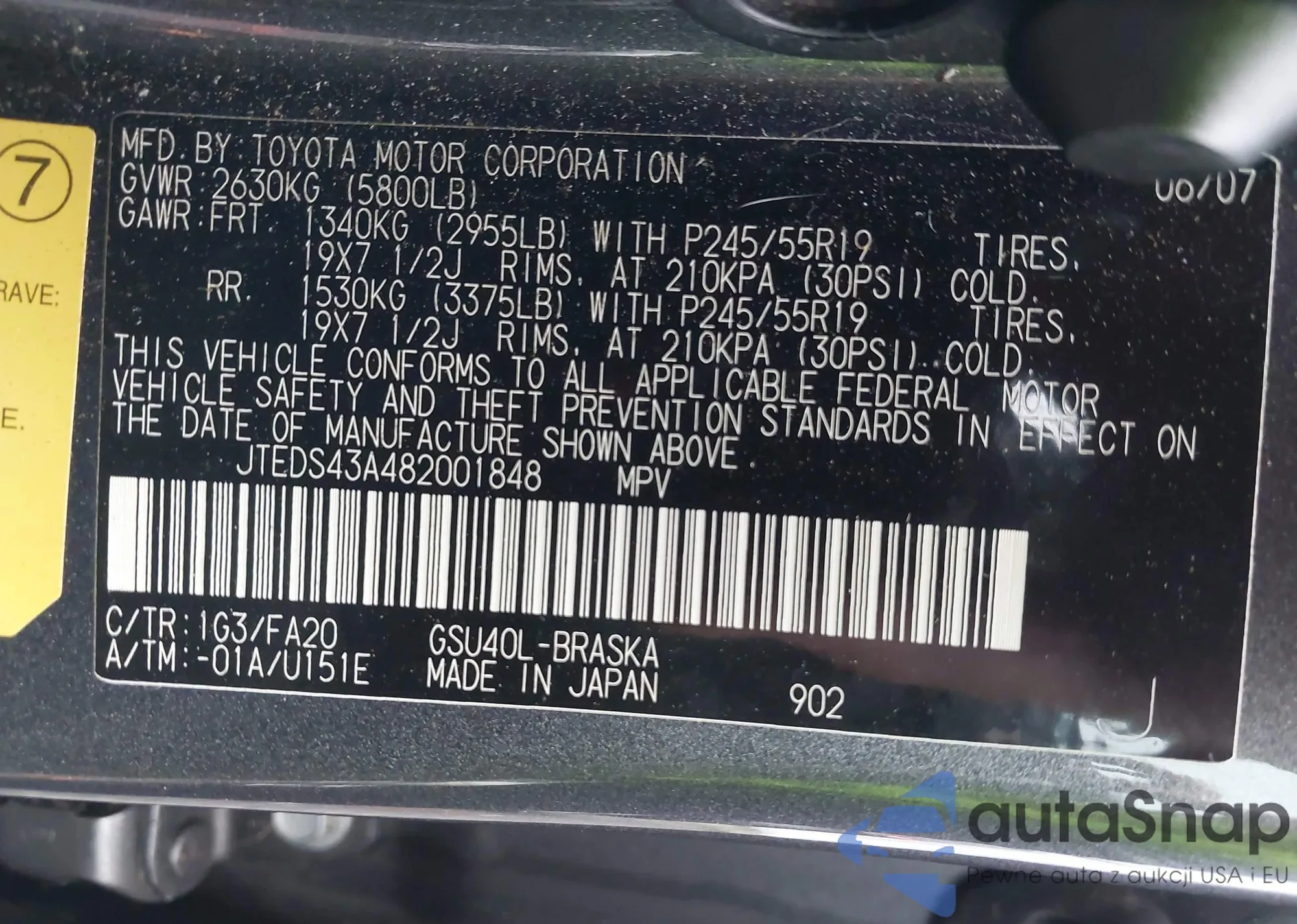 LOT: 42913725 VIN: JTEDS43A482001848