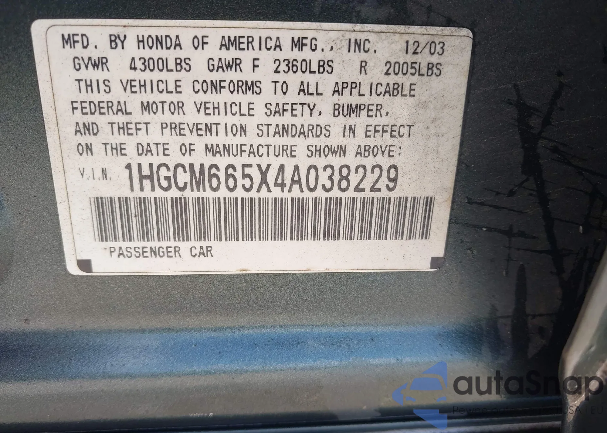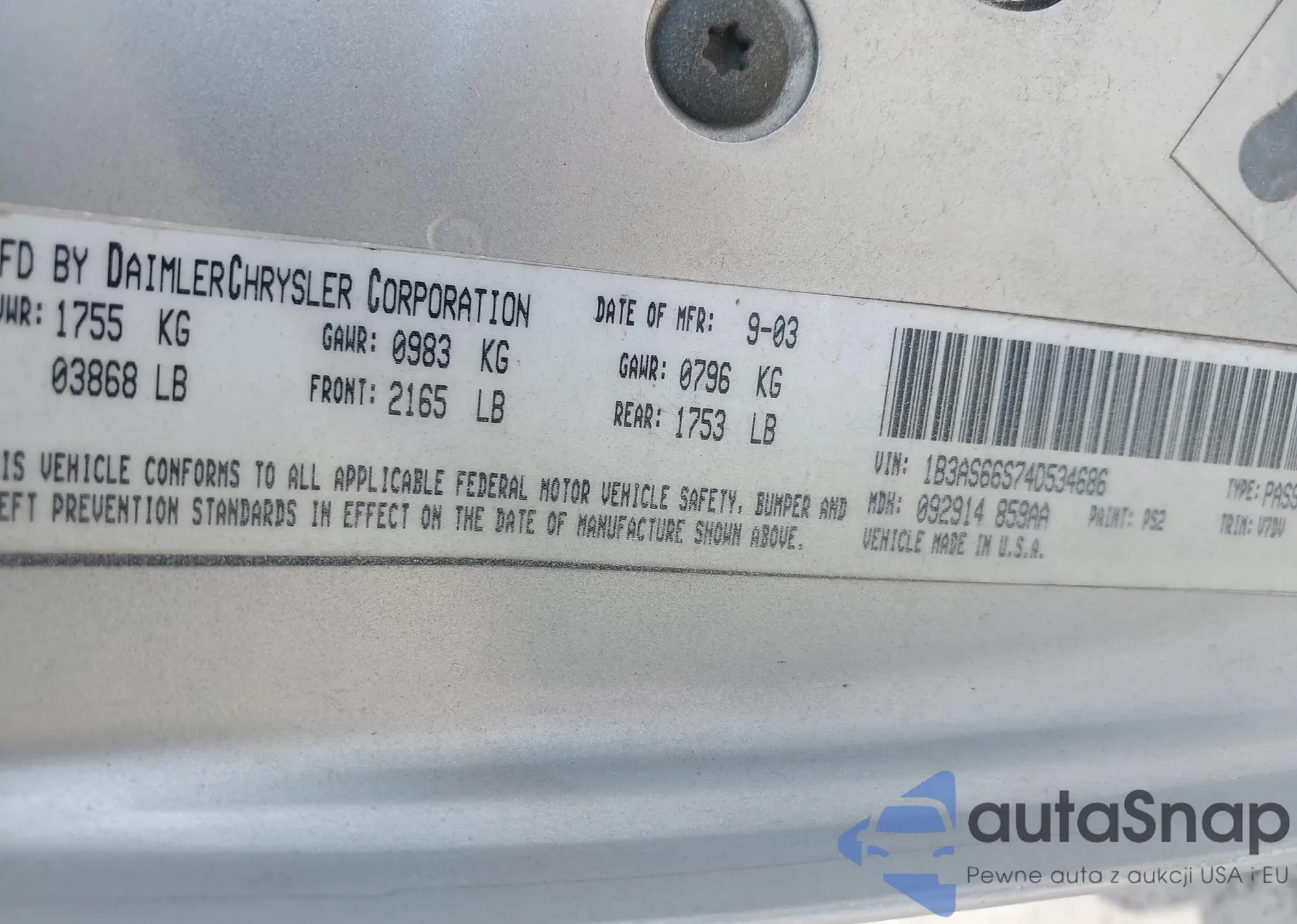 • VIN 1B3AS66S74D534686