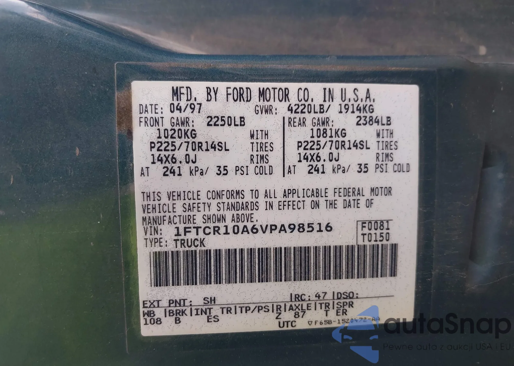 • VIN 1FTCR10A6VPA98516