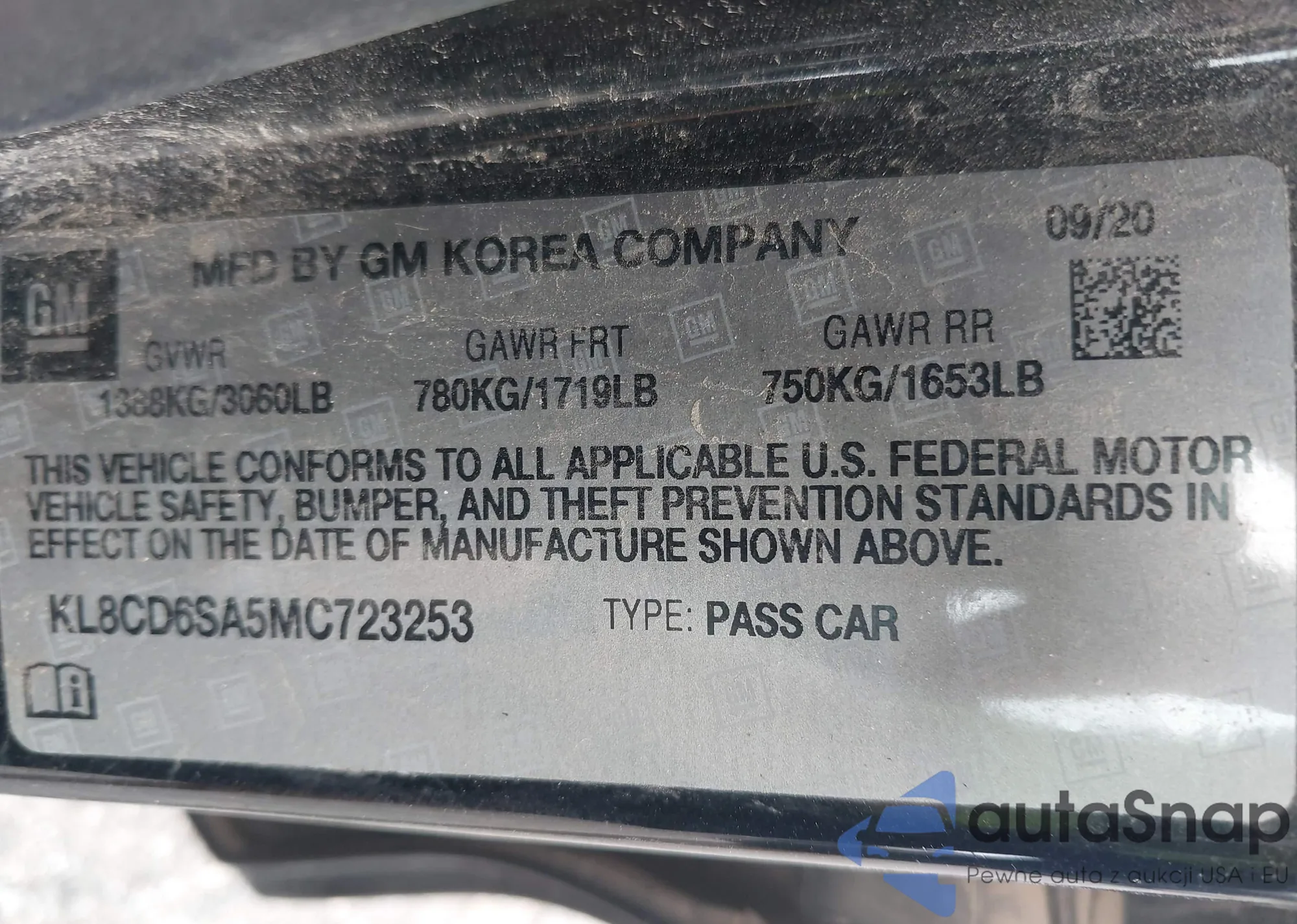 • VIN KL8CD6SA5MC723253