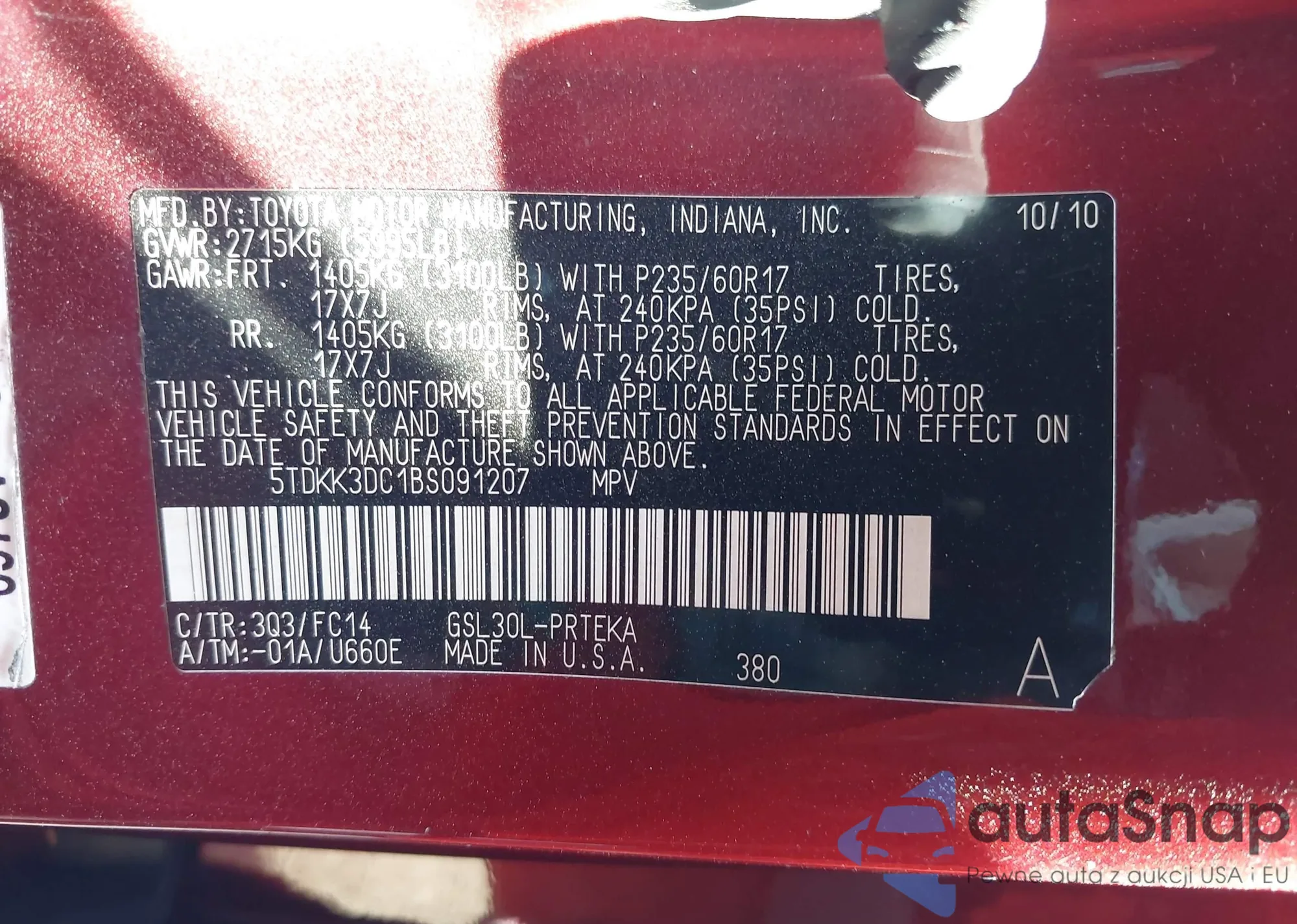 • VIN 5TDKK3DC1BS091207