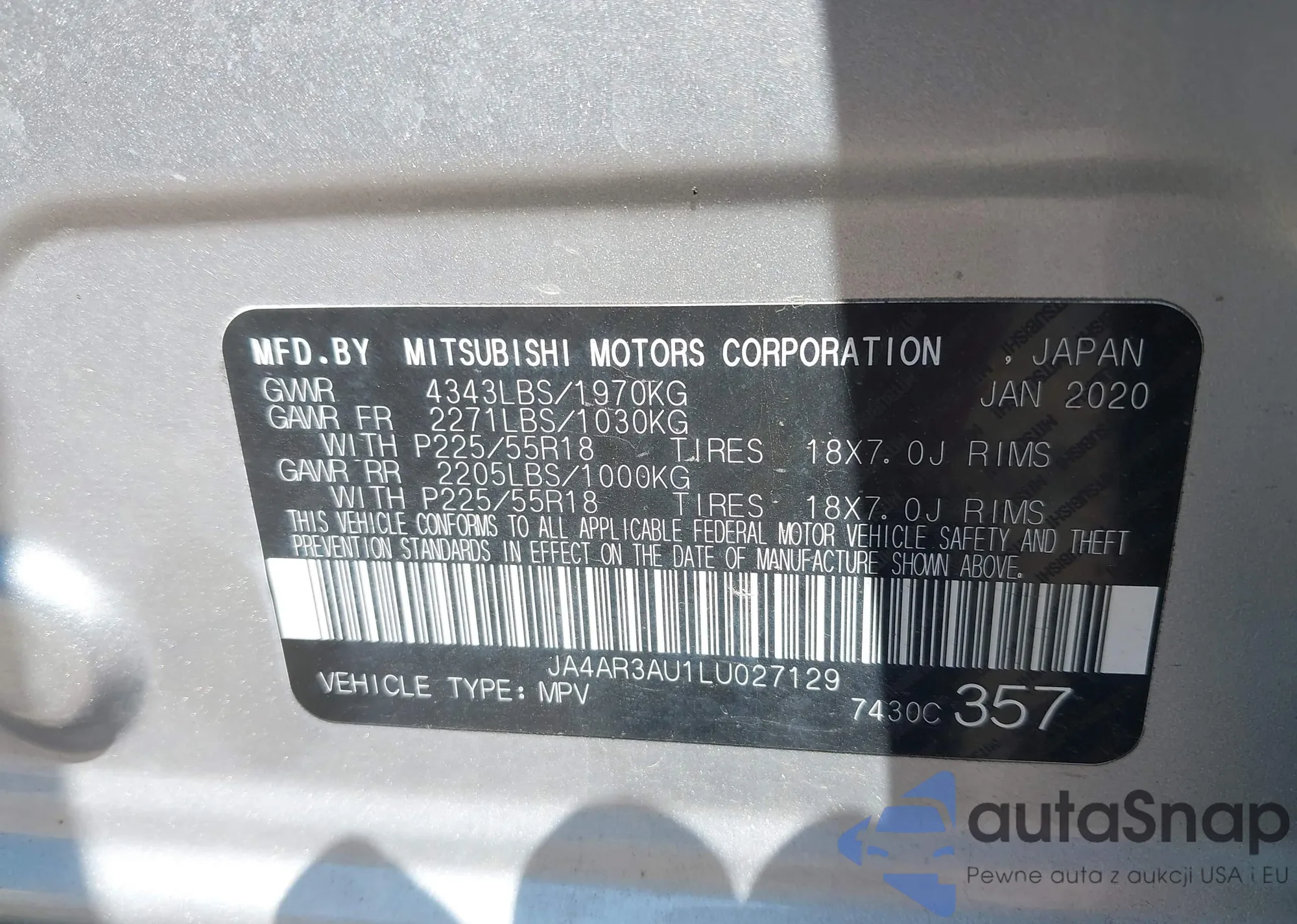 LOT: 42641730 VIN: JA4AR3AU1LU027129