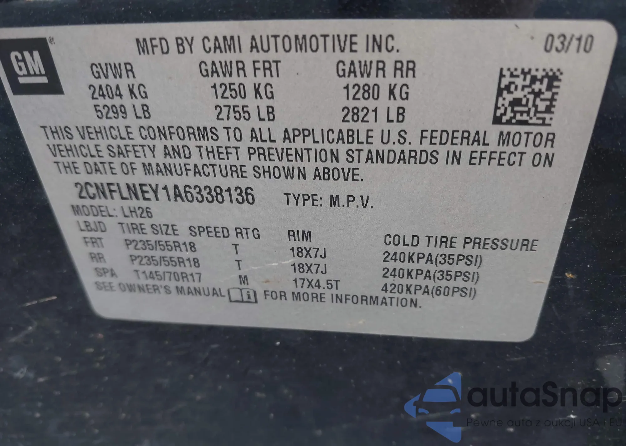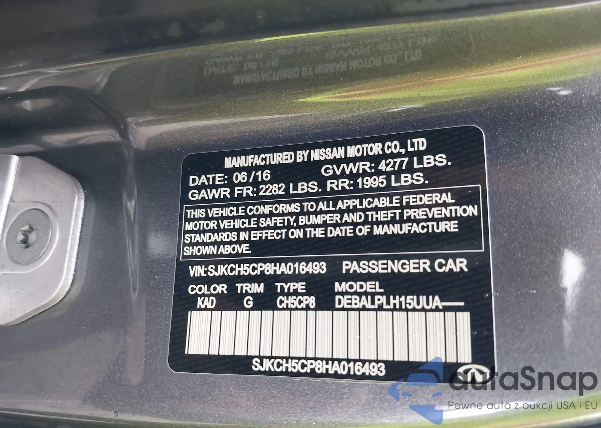 LOT: 42210817 VIN: SJKCH5CP8HA016493