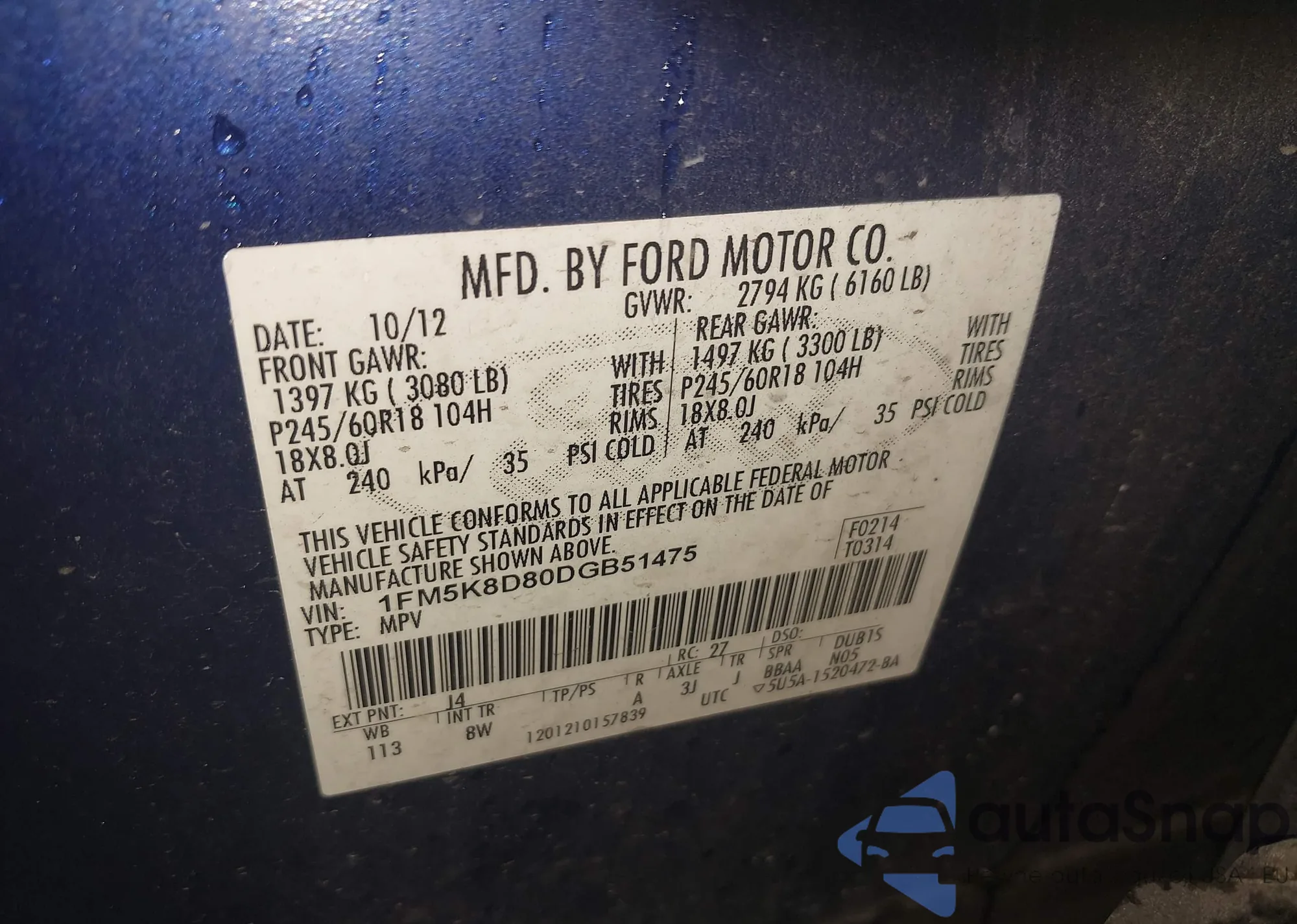 • VIN 1FM5K8D80DGB51475