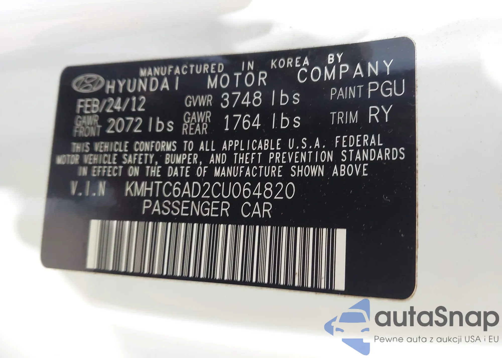 • VIN KMHTC6AD2CU064820