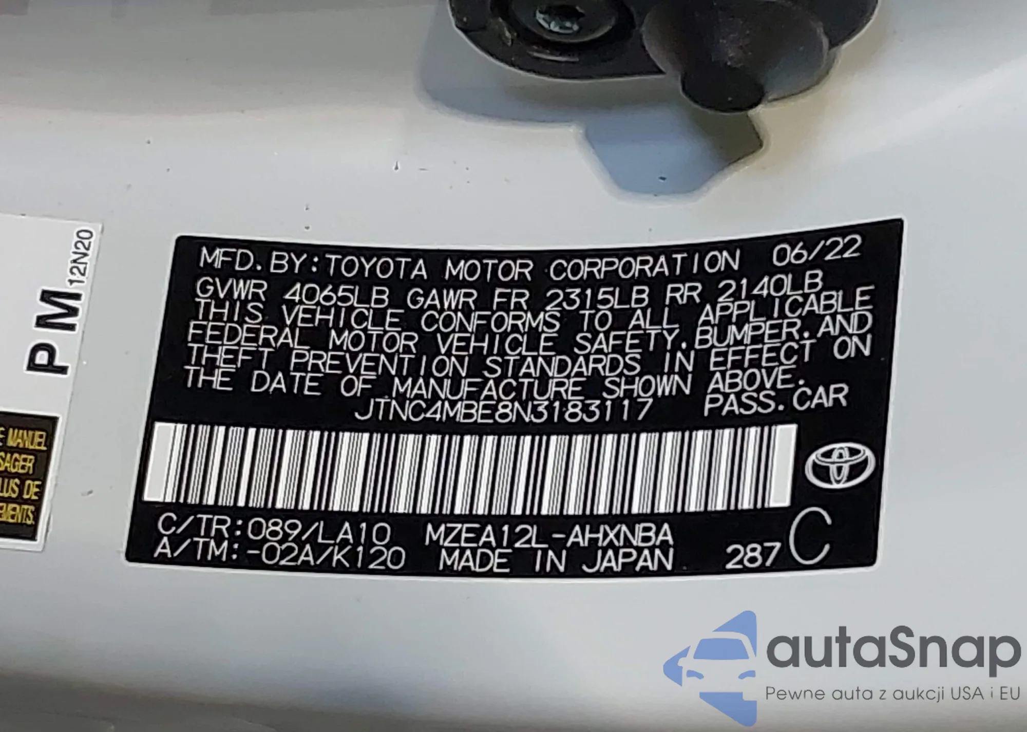 • VIN JTNC4MBE8N3183117