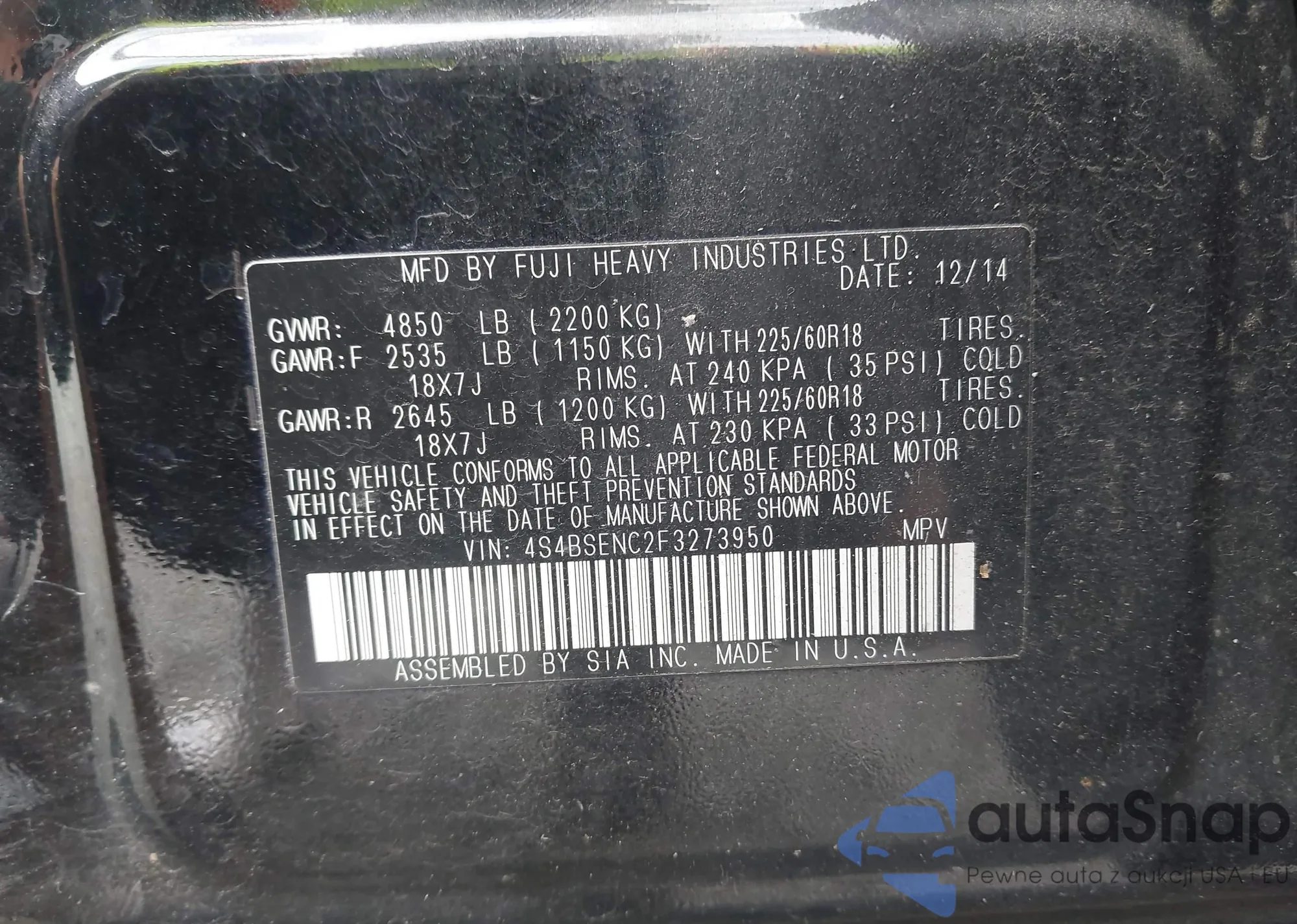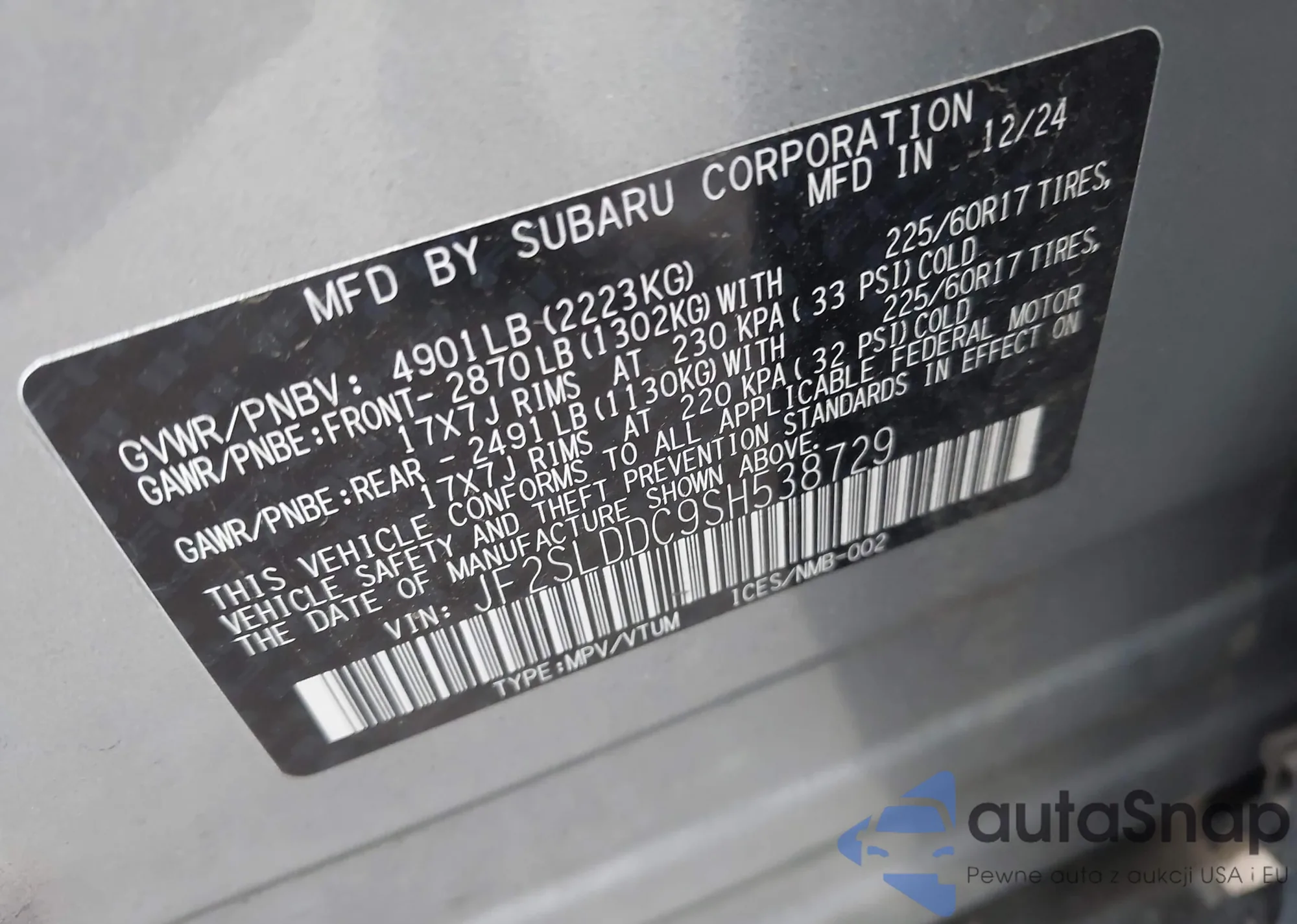 LOT: 42999834 VIN: JF2SLDDC9SH538729