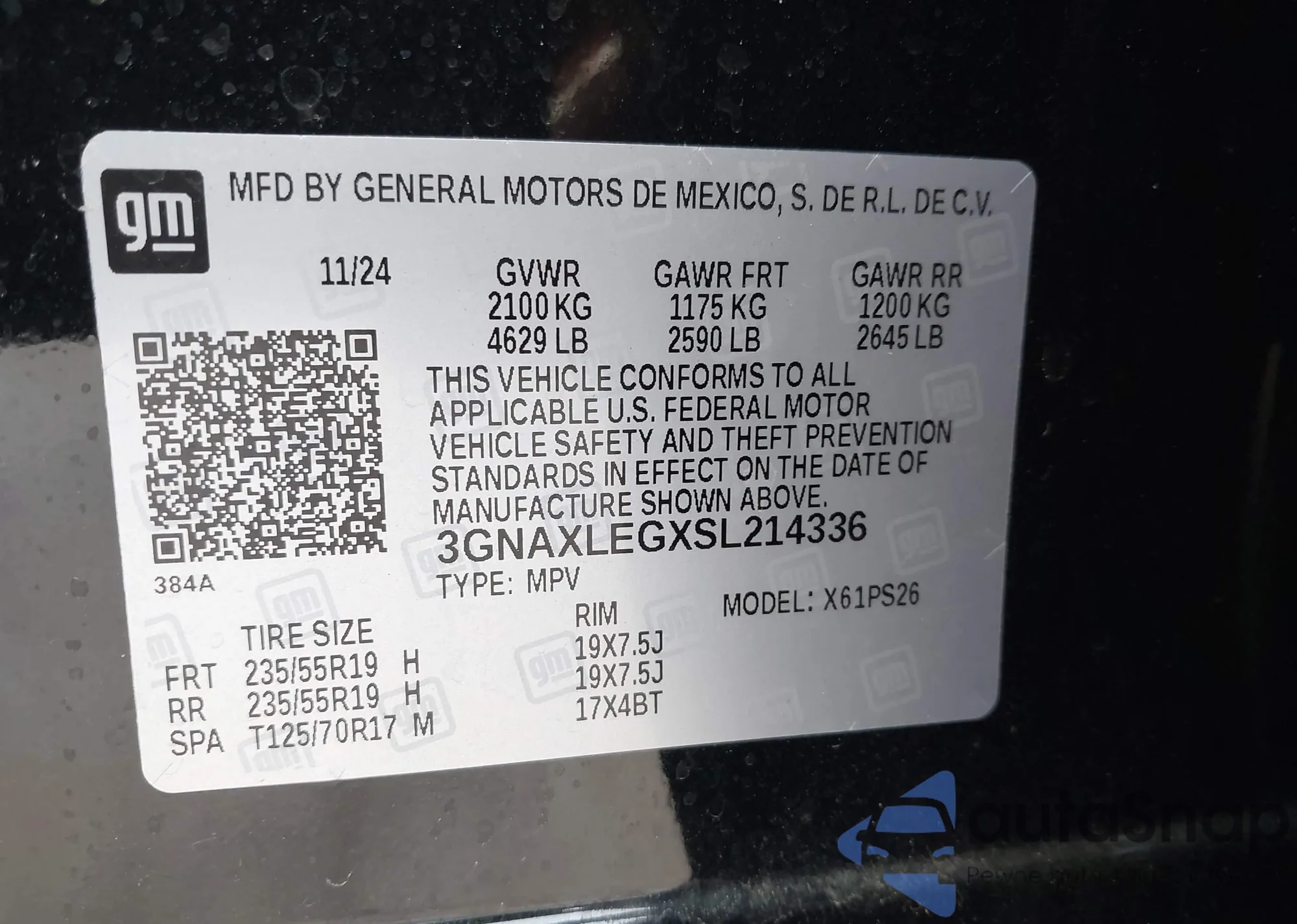 • VIN 3GNAXLEGXSL214336