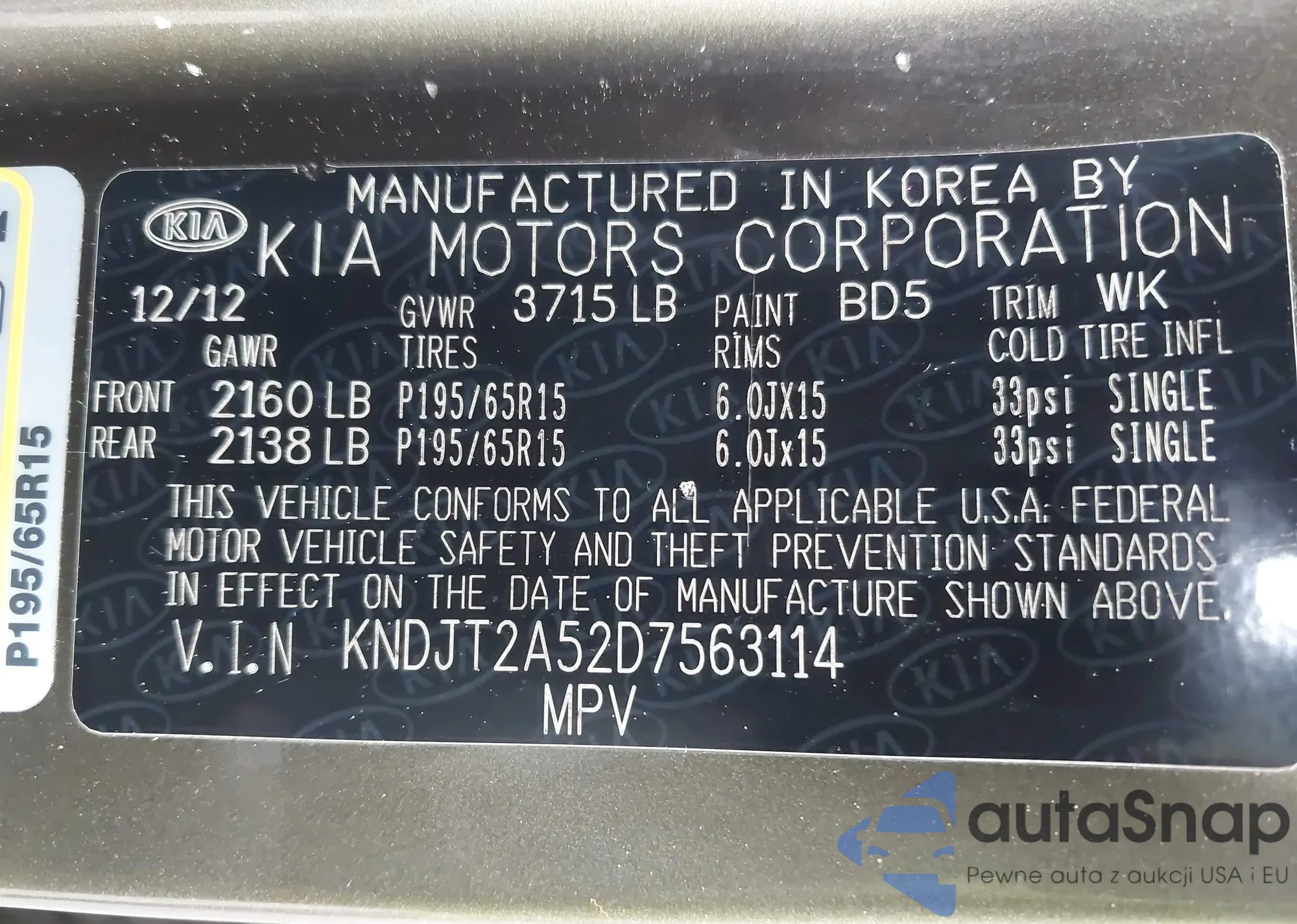 LOT: 43016336 VIN: KNDJT2A52D7563114