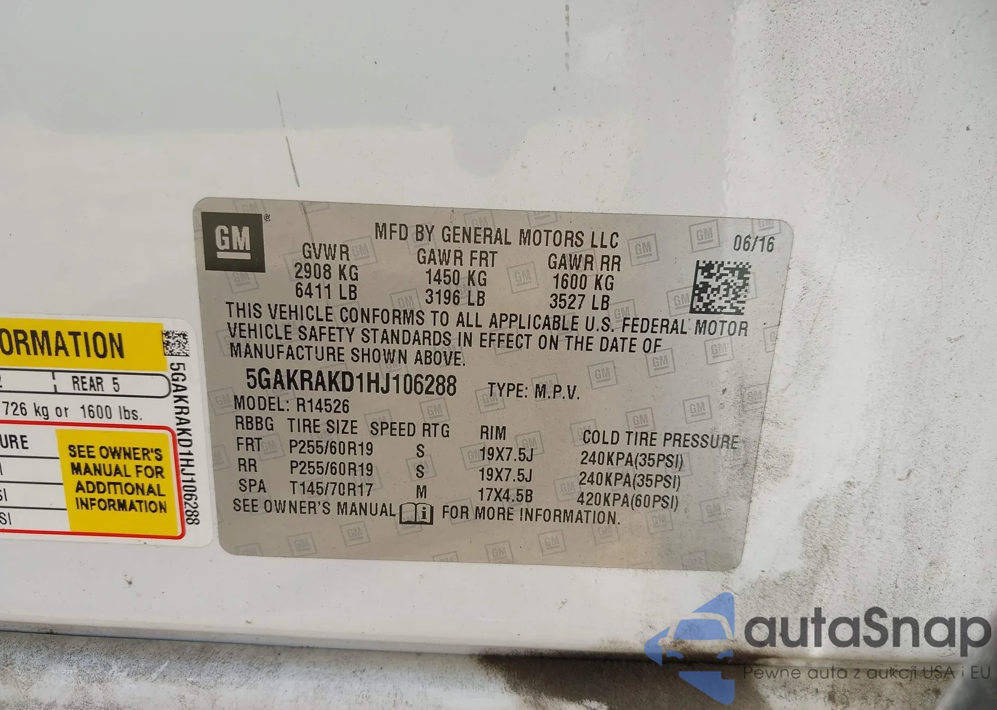 • VIN 5GAKRAKD1HJ106288