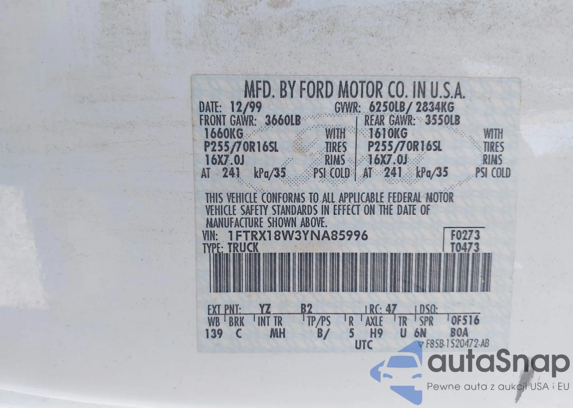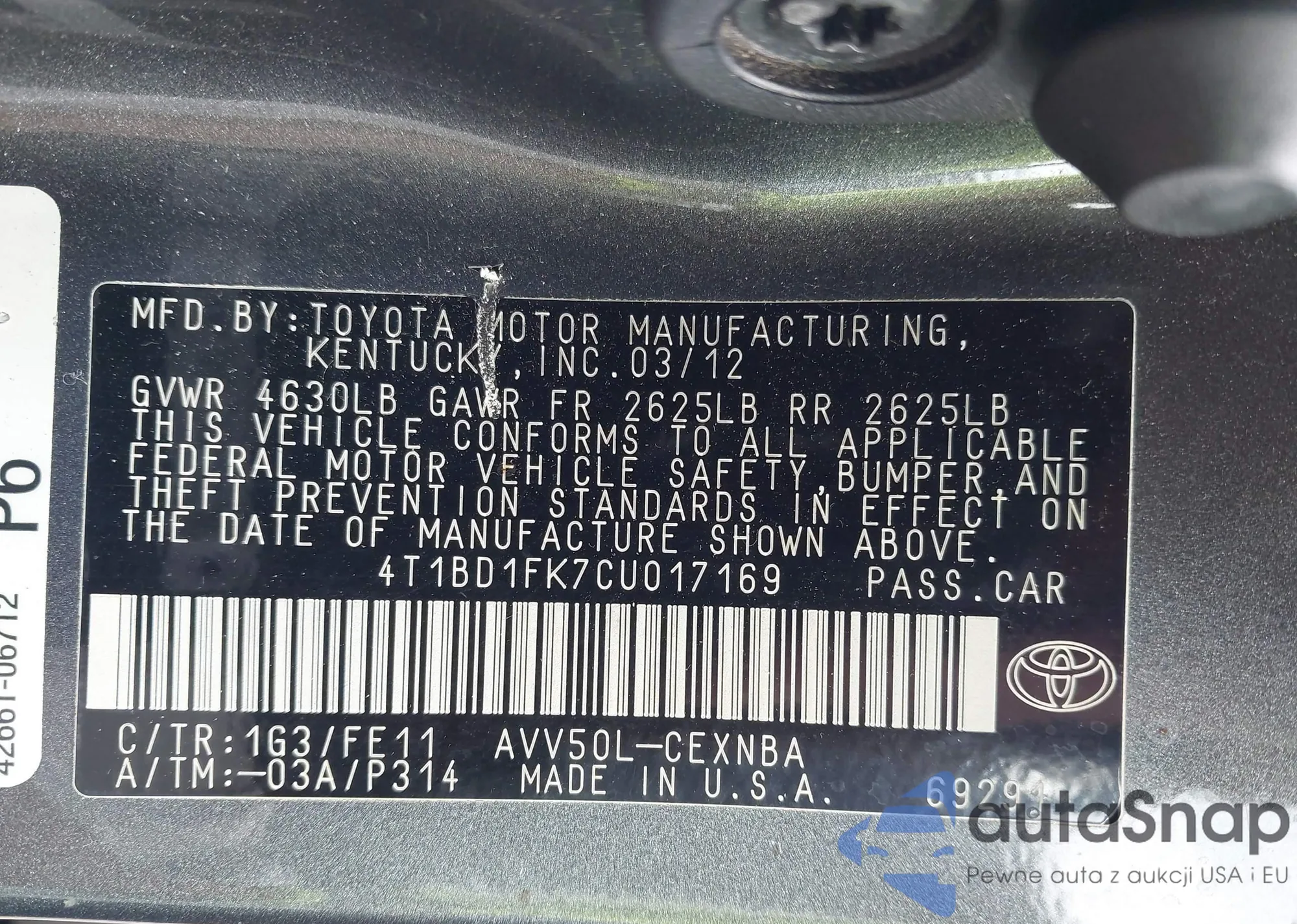 LOT: 42799551 VIN: 5TFUW5F19CX258672