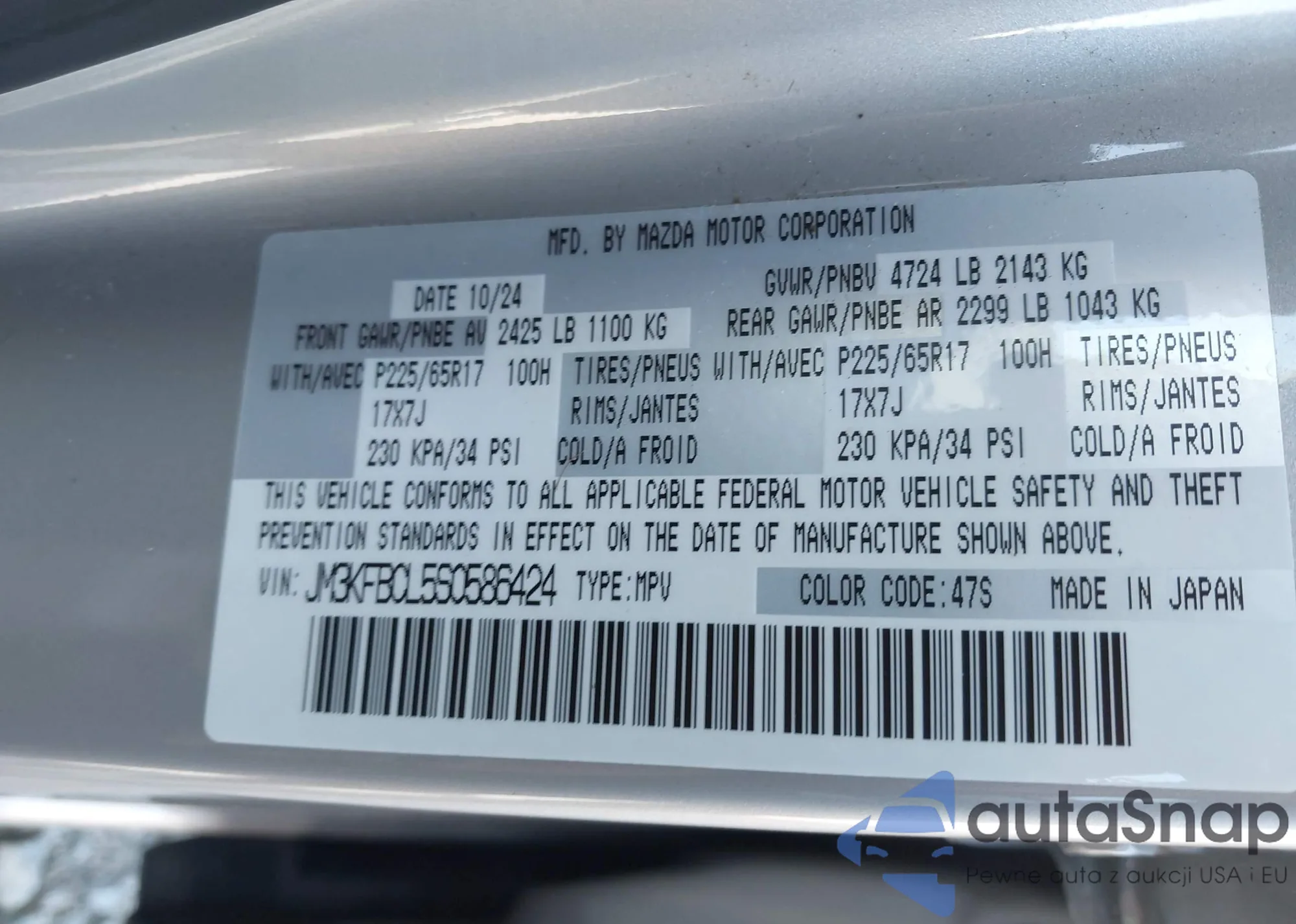 LOT: 43066823 VIN: JM3KFBCL5S0586424