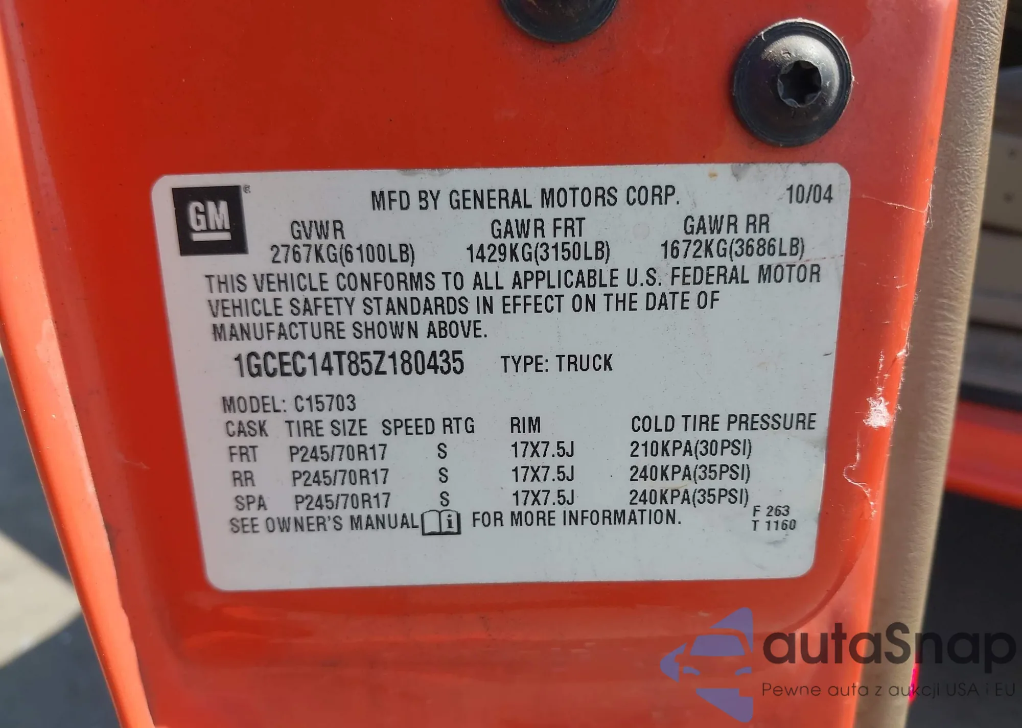 • VIN 1GCEC14T85Z180435