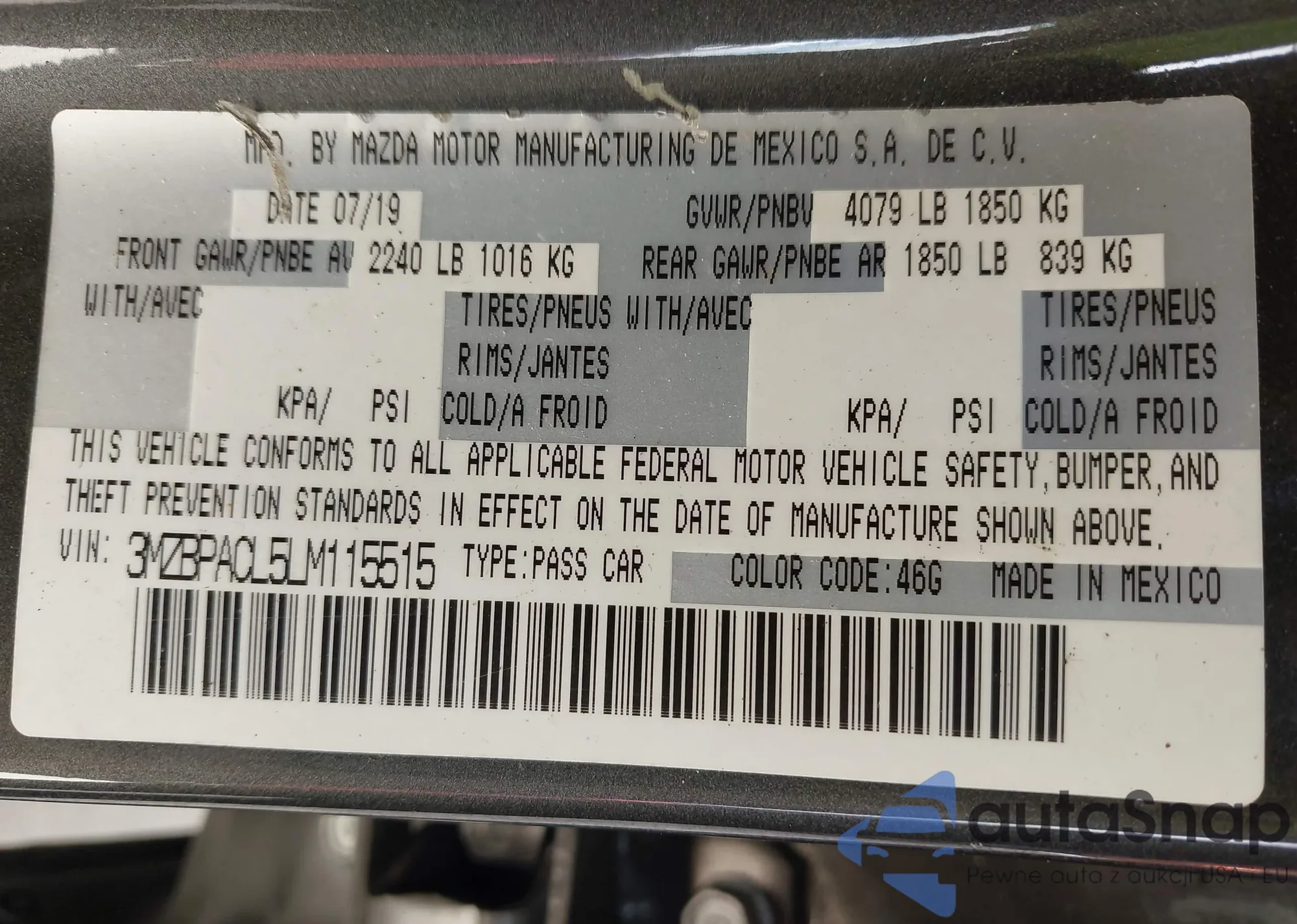 • VIN KL4CJGSB9FB049075