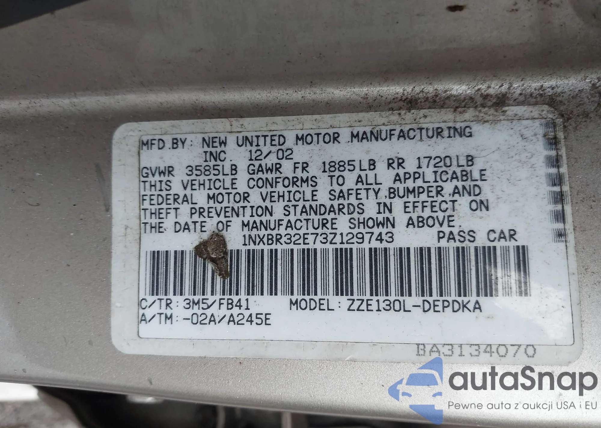 LOT: 43016773 VIN: 1NXBR32E73Z129743