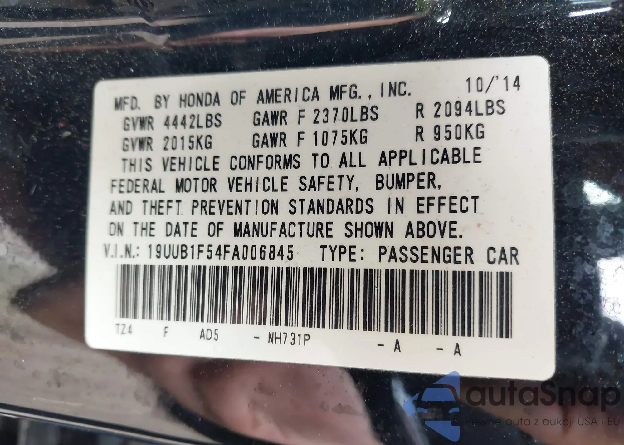• VIN 19UUB1F54FA006845