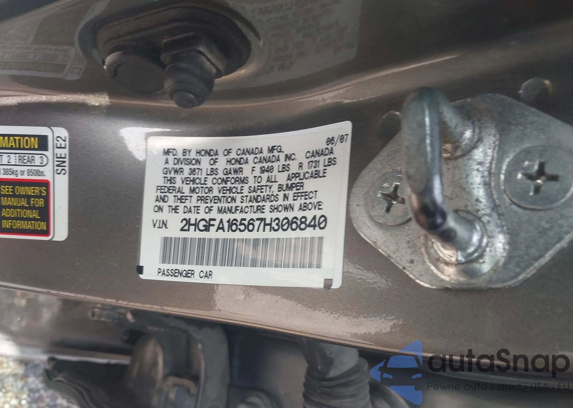 • VIN 2HGFA16567H306840