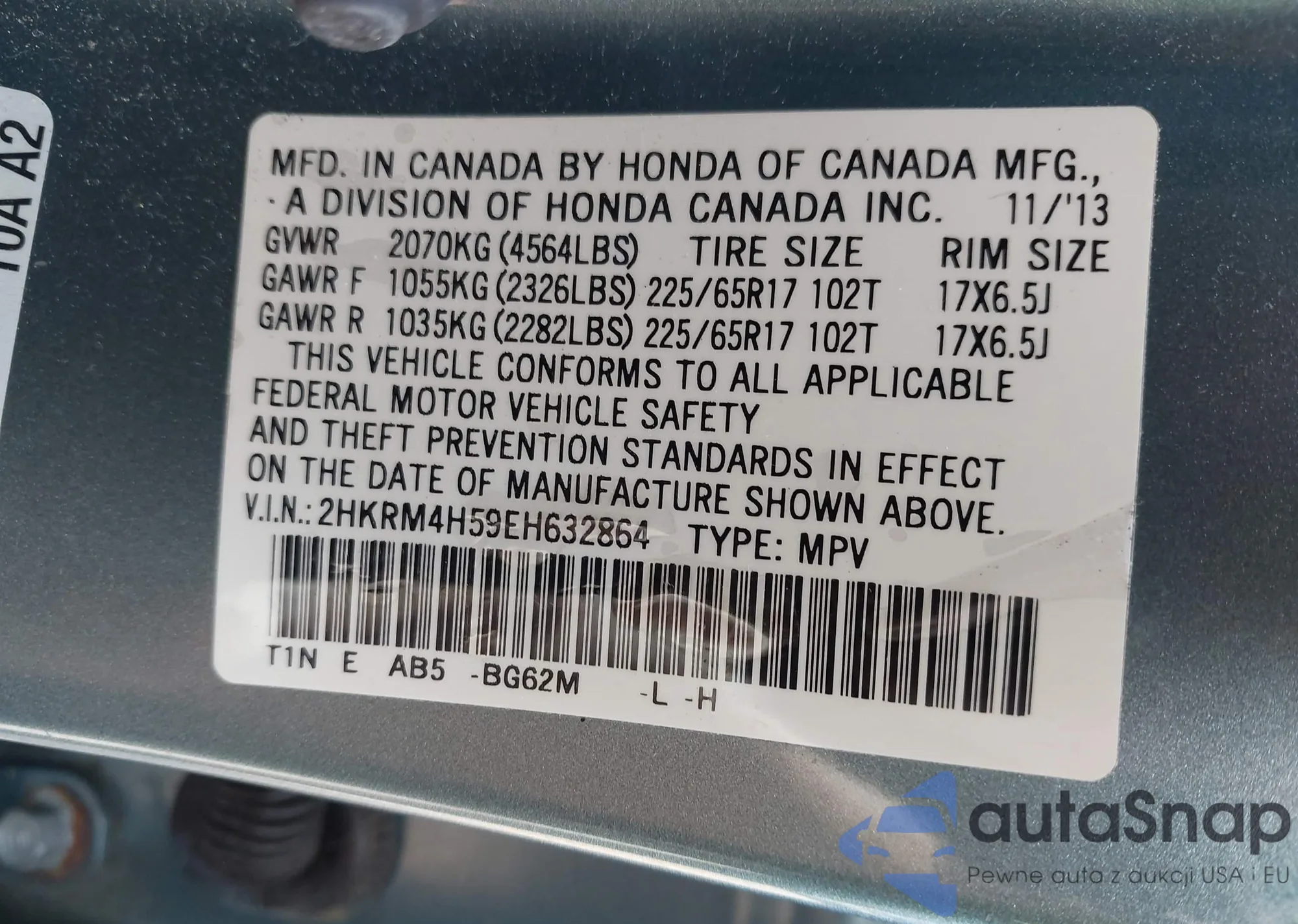 • VIN 2HKRM4H59EH632864