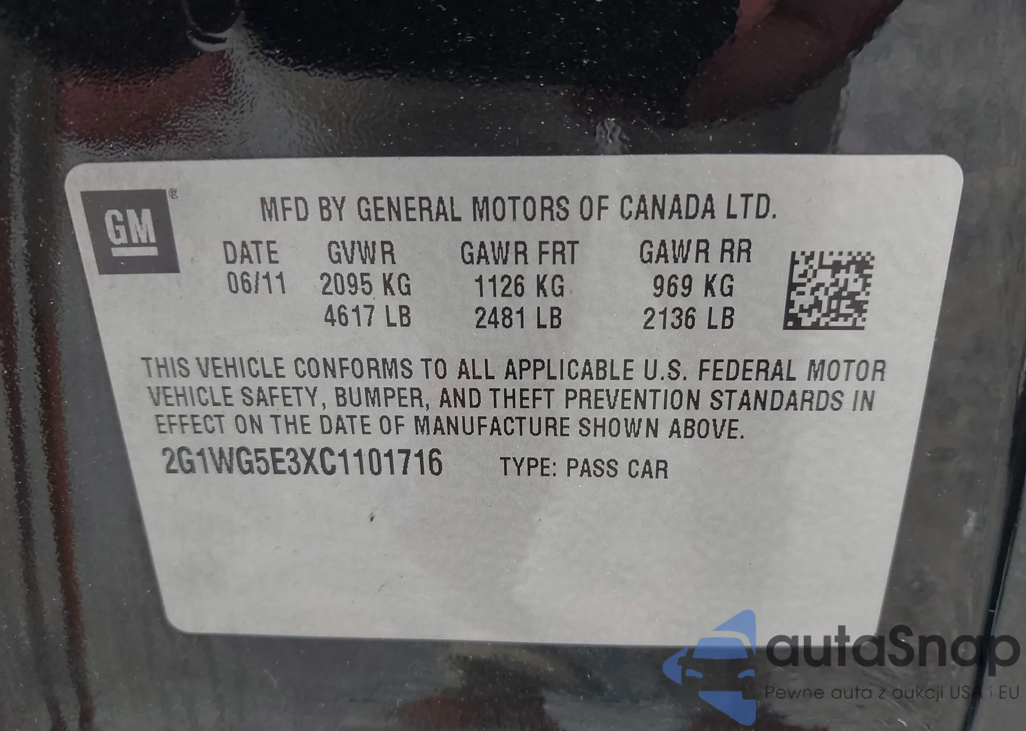 • VIN 2G1WG5E3XC1101716