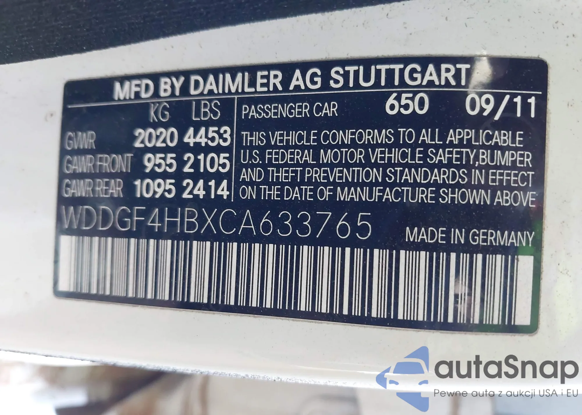 LOT: 43033621 VIN: WDDGF4HBXCA633765