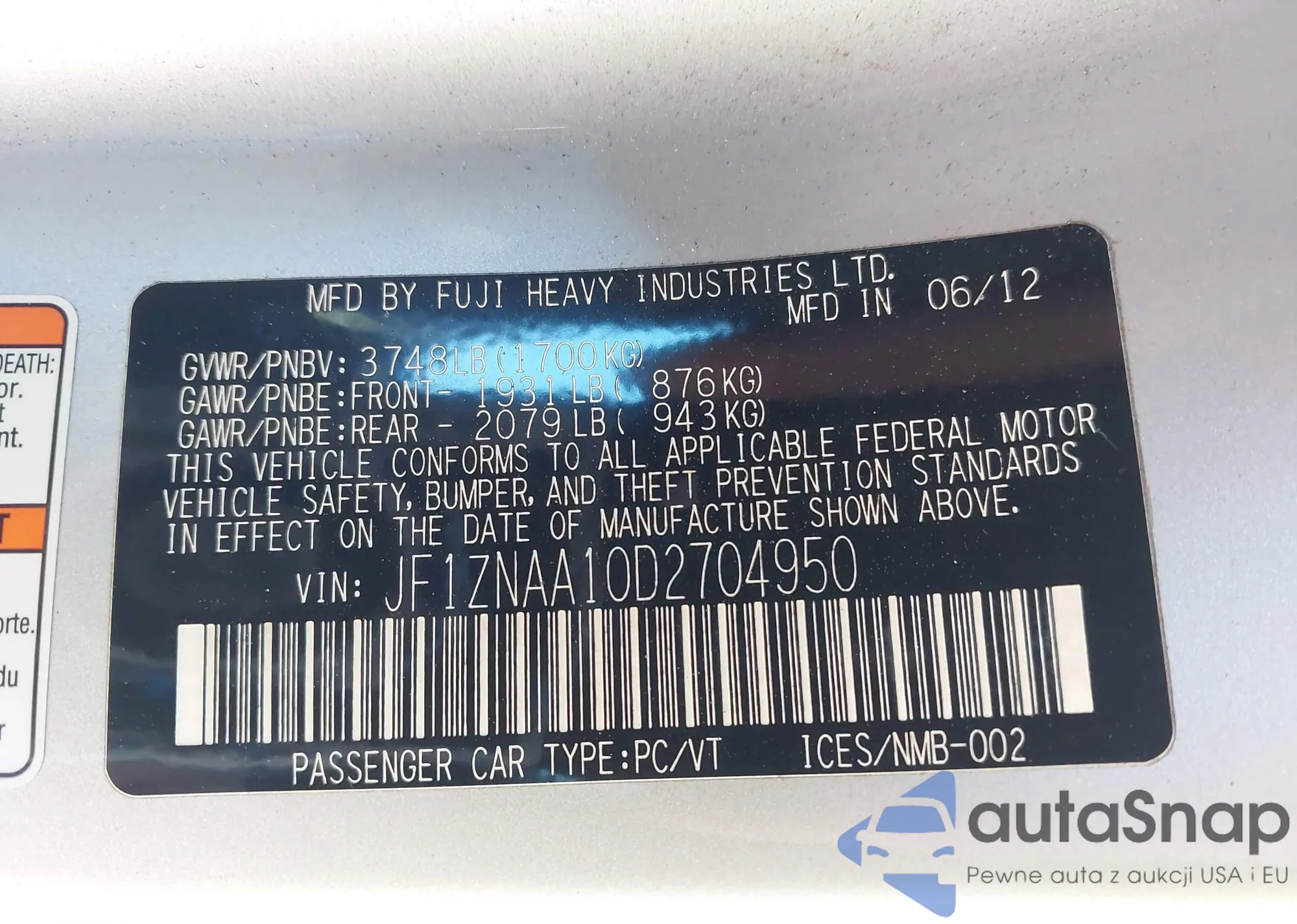 LOT: 43030900 VIN: JF1GV7F63DG014000