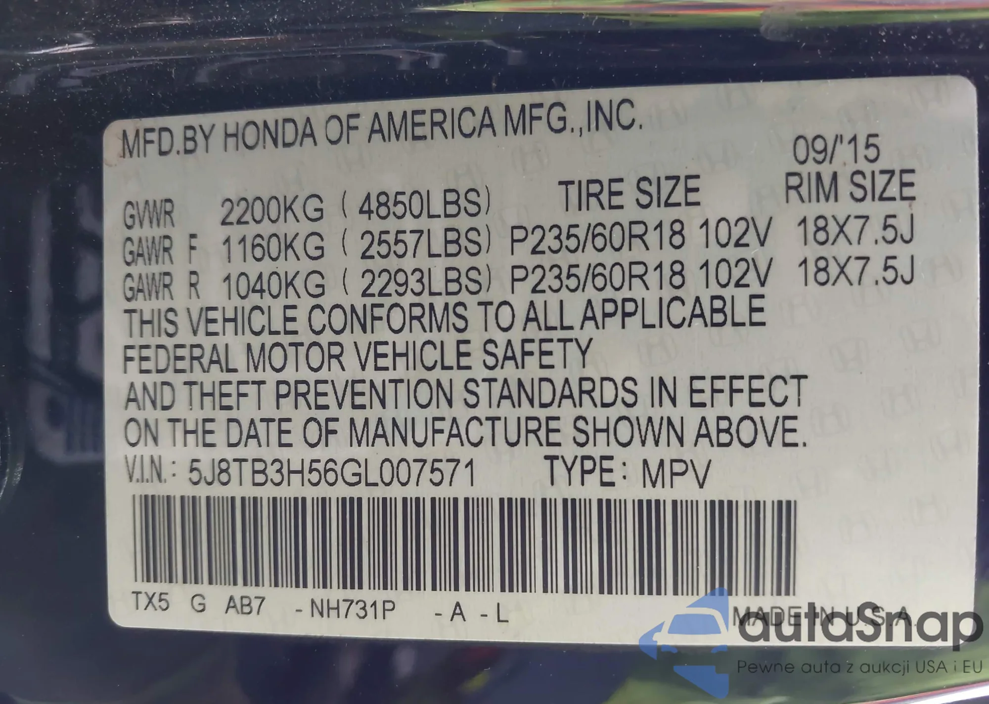 • VIN 5J8TB3H56GL007571
