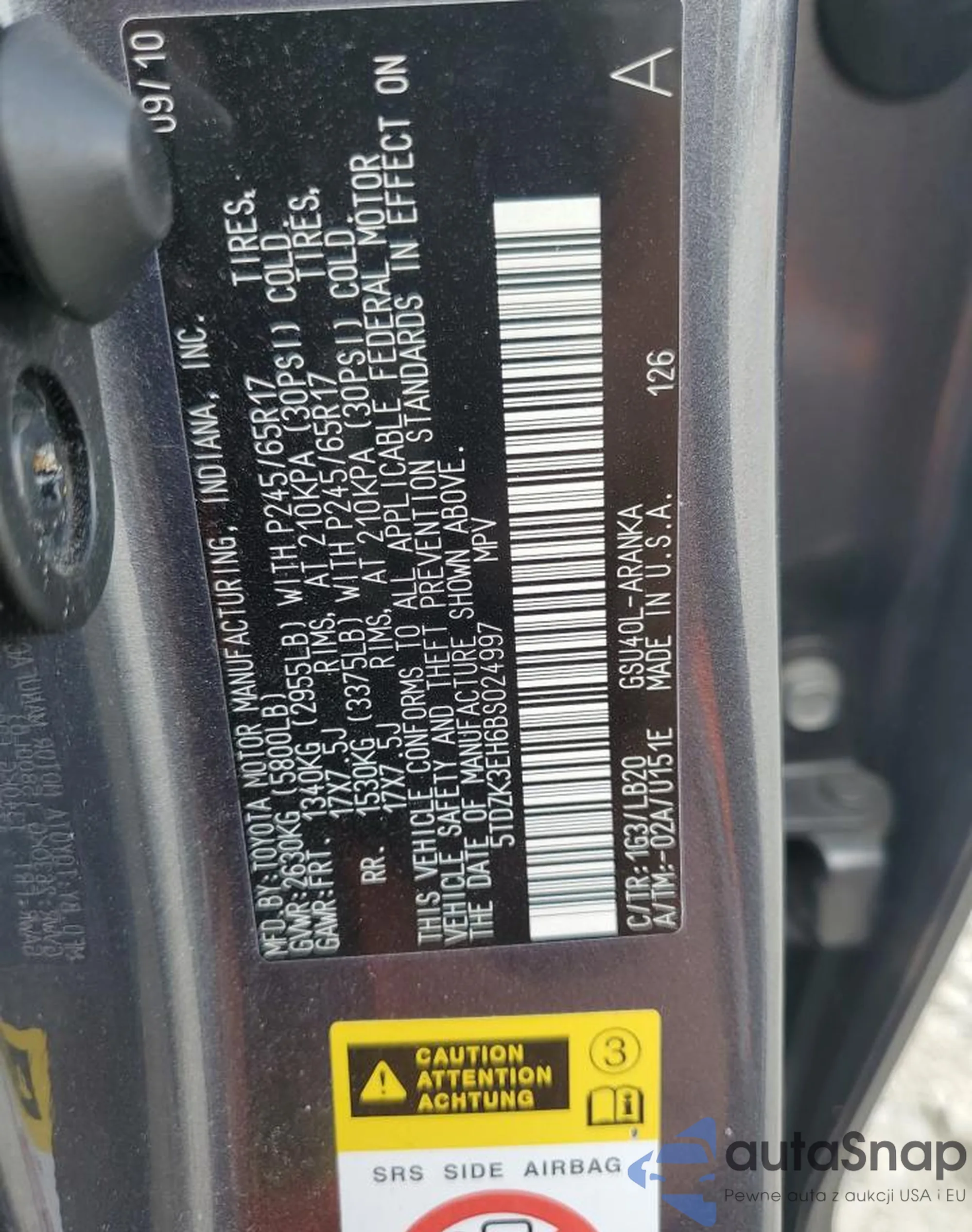 • VIN 1N4BL4DV9SN333001