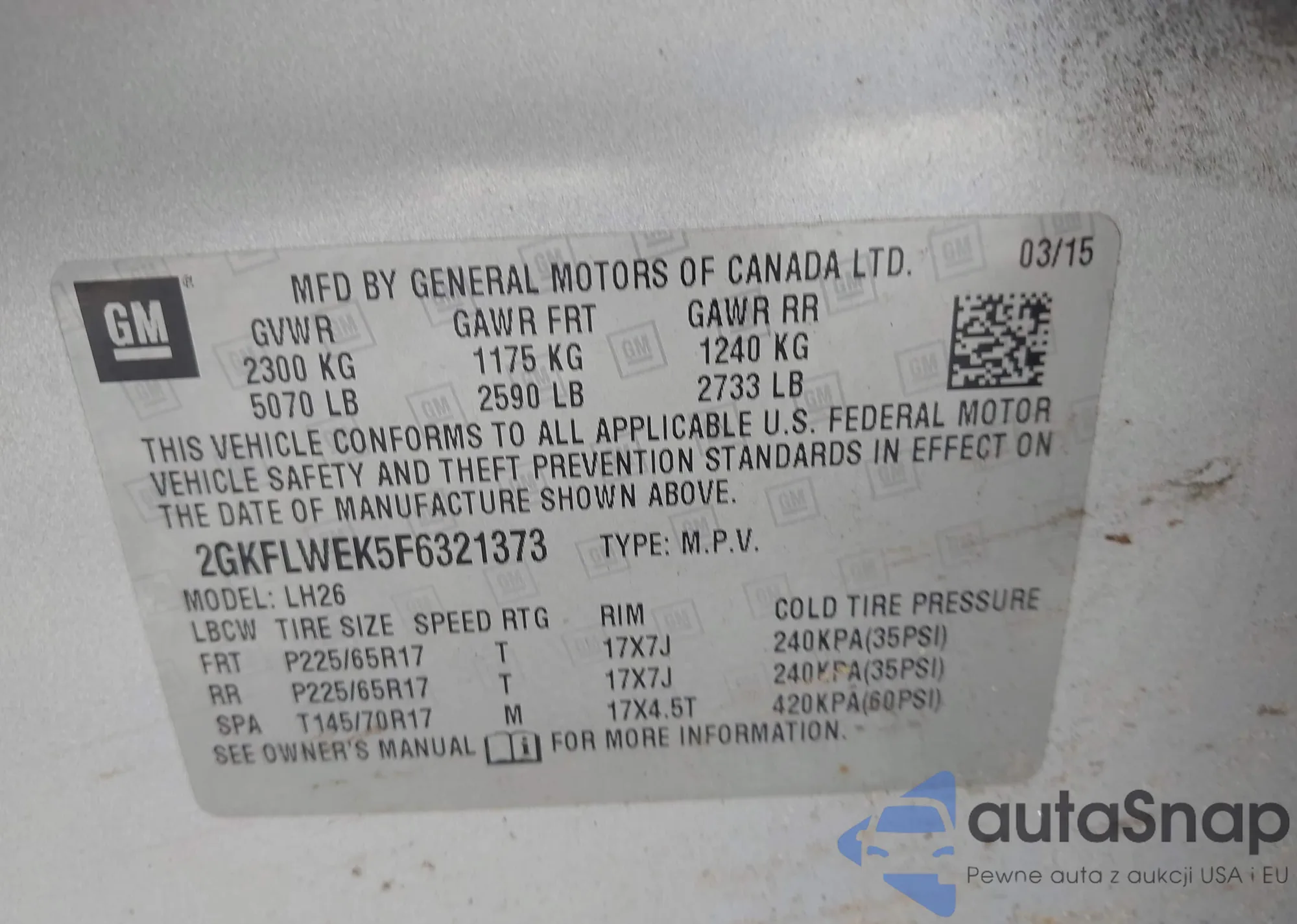 • VIN 2GKFLWEK5F6321373