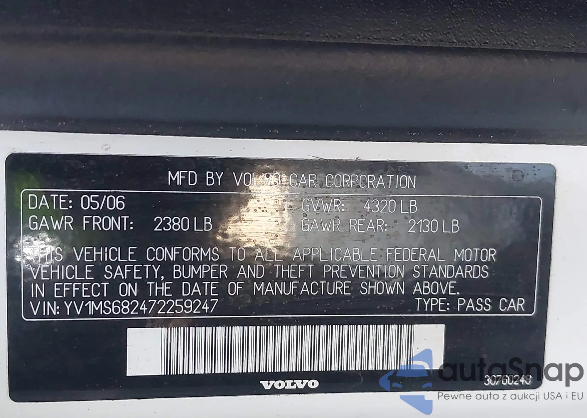 LOT: 43074428 VIN: YV1MS682472259247