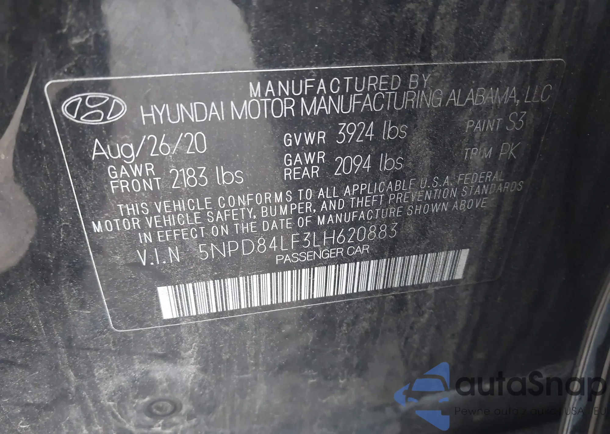 • VIN 5NPEB4AC0BH190968