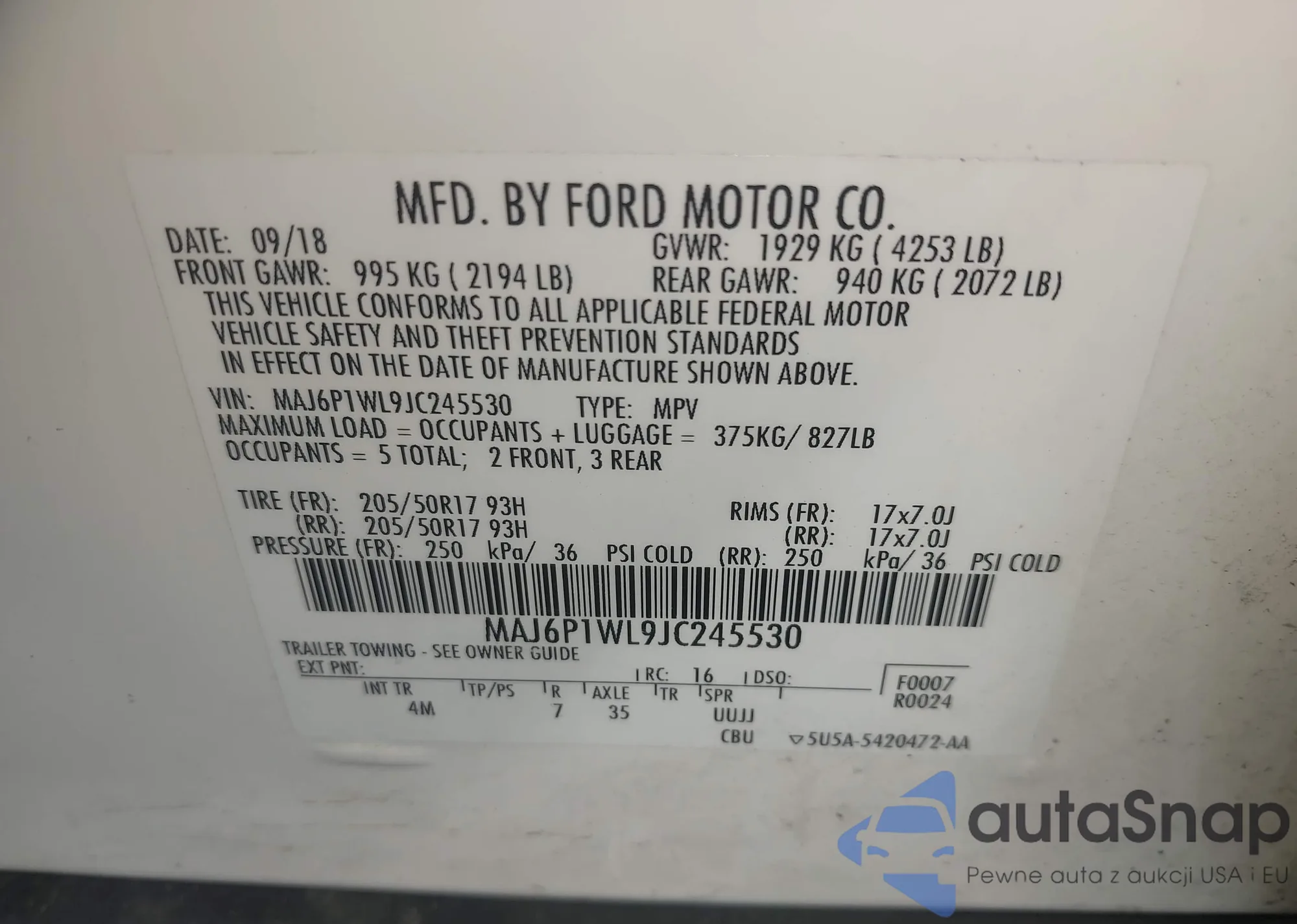 • VIN MAJ6P1WL9JC245530