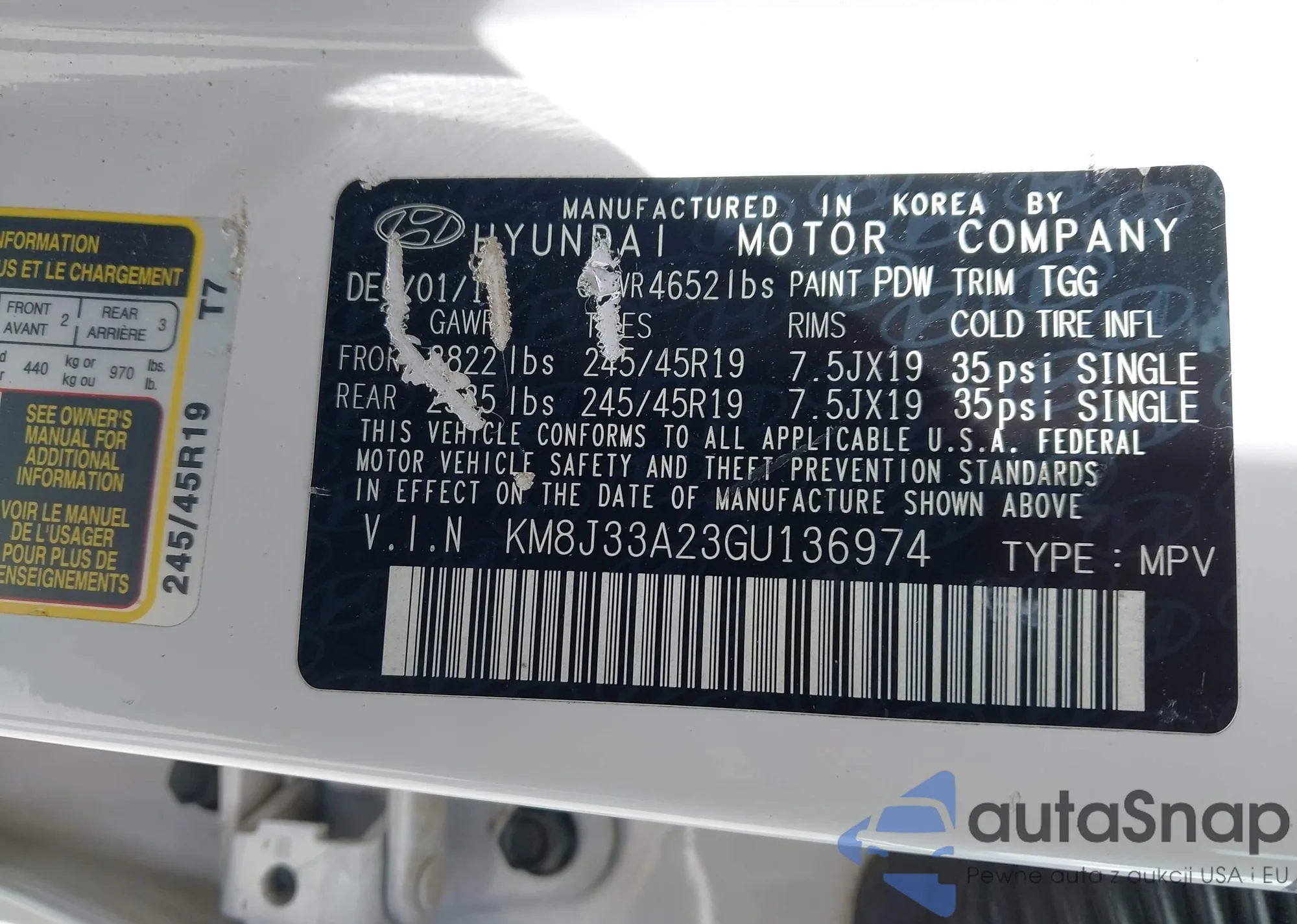• VIN KM8J33A23GU136974