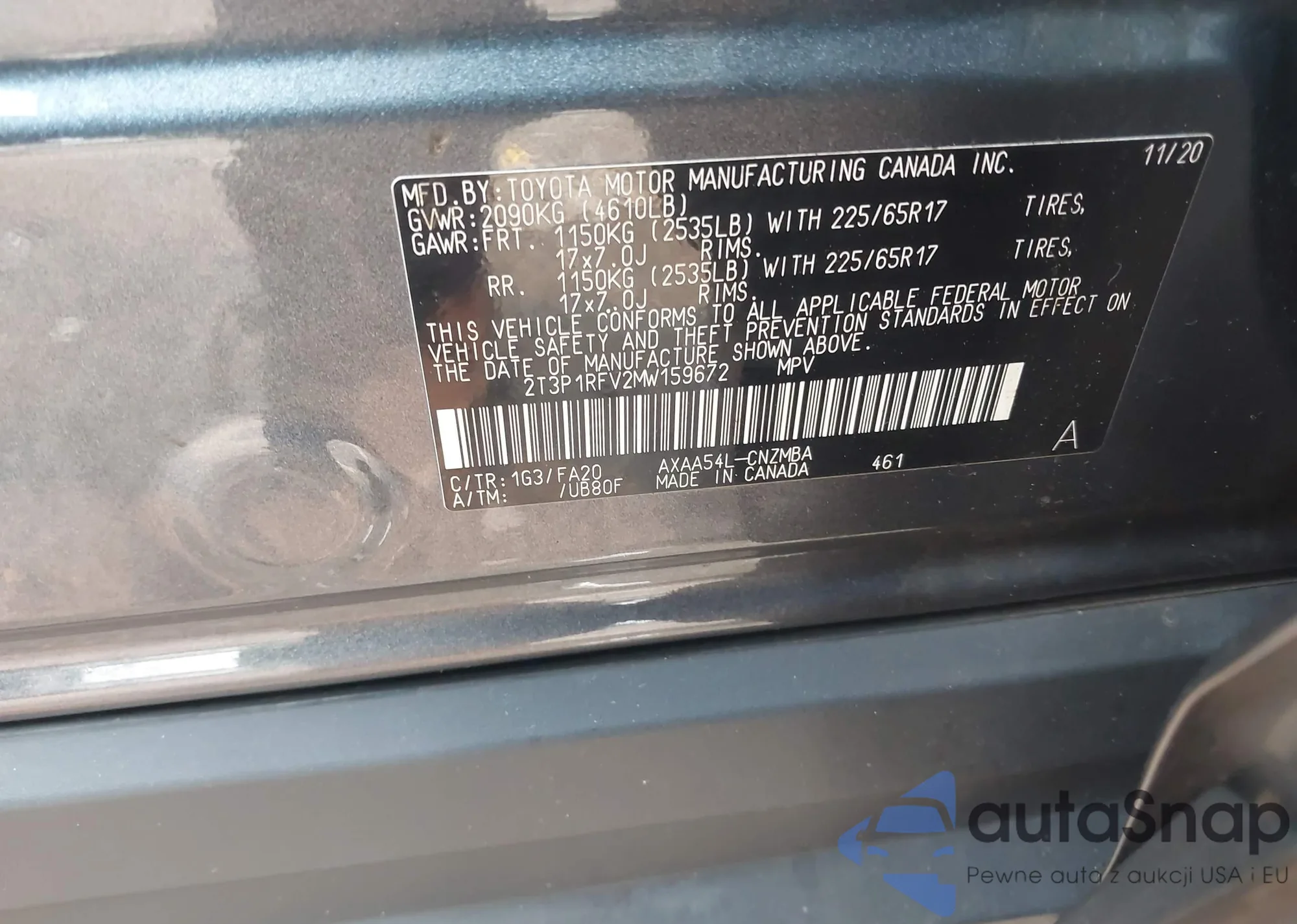 • VIN 2T3P1RFV2MW159672