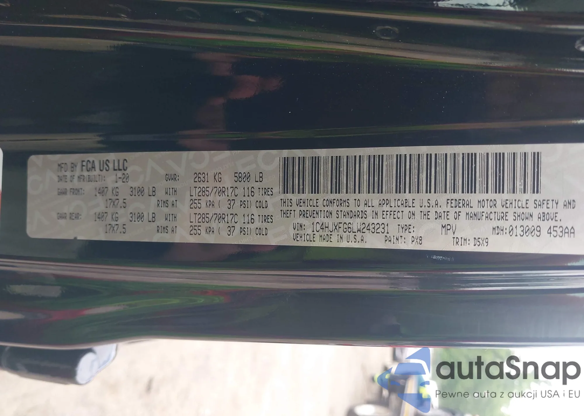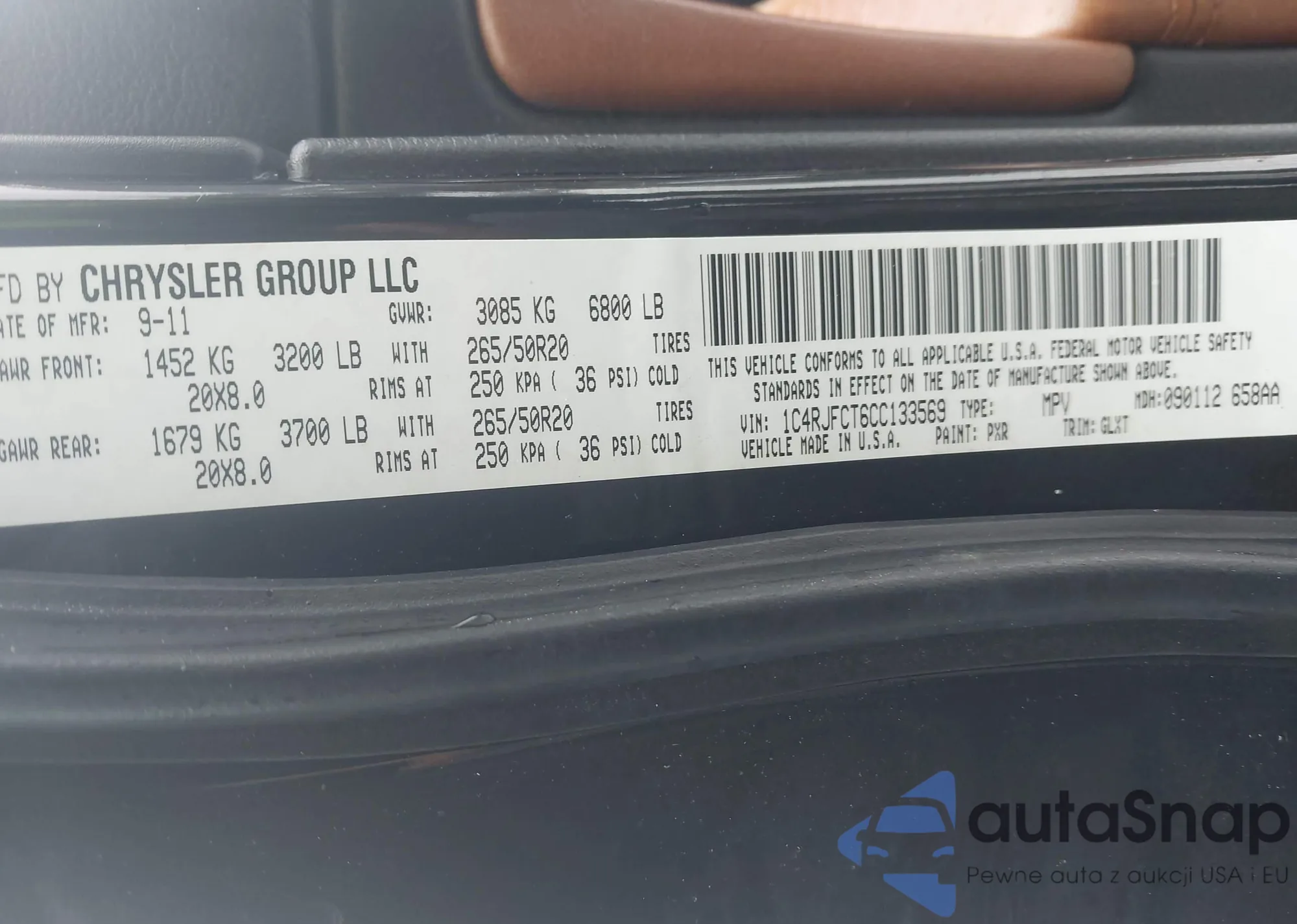 • VIN 1C4RJFAG4JC390846