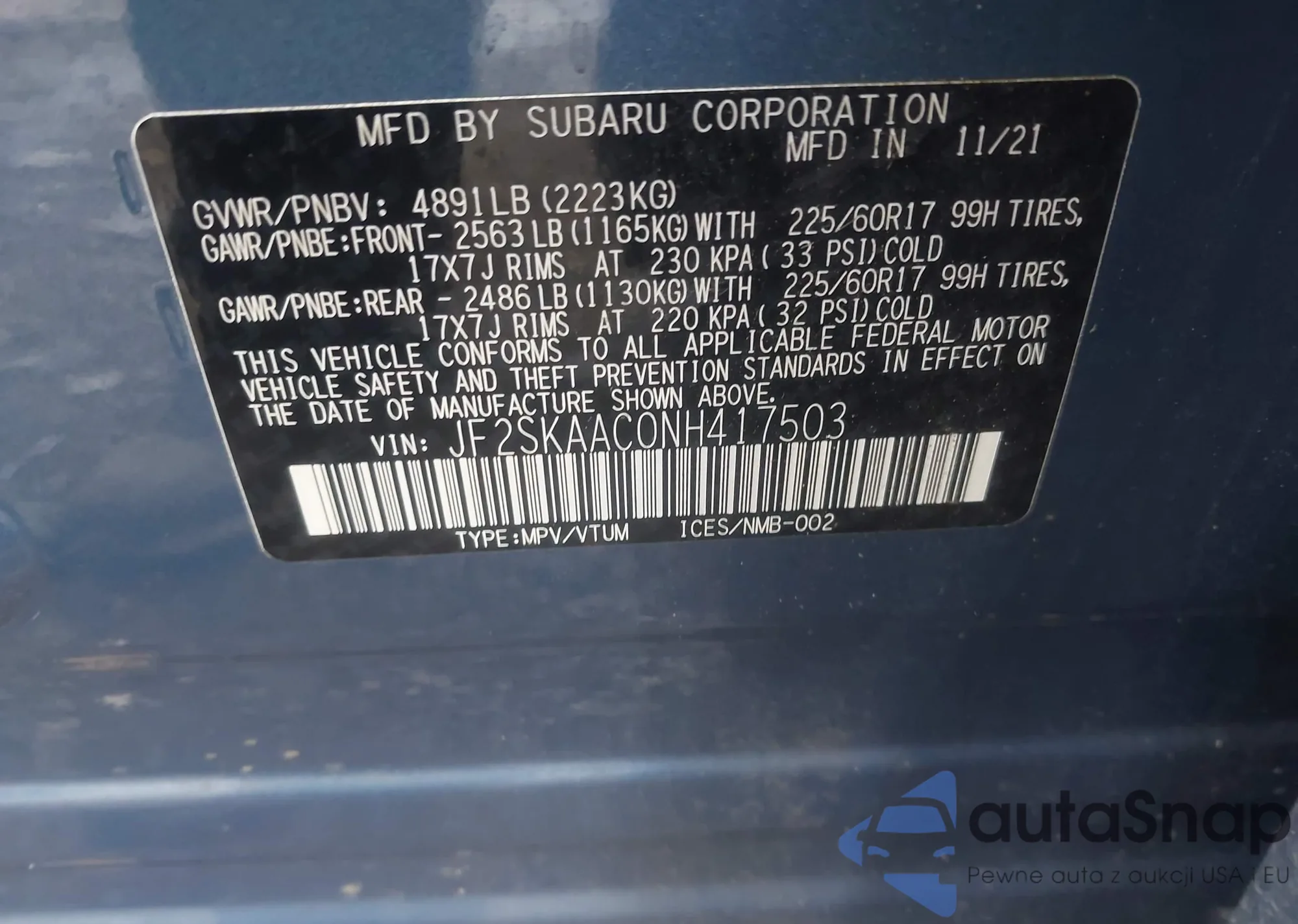 • VIN JF2SKAAC0NH417503