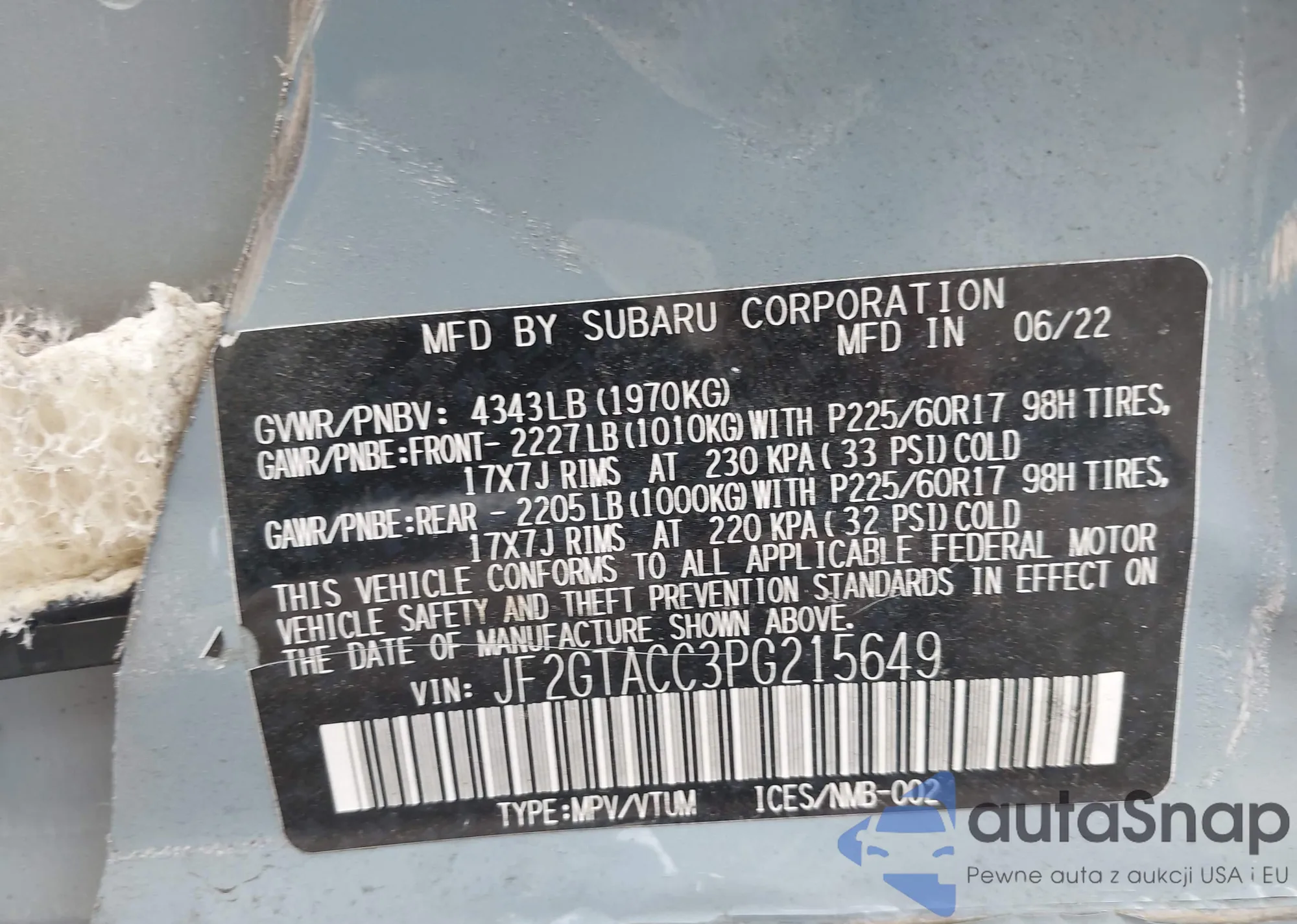 • VIN JF2GTACC3PG215649