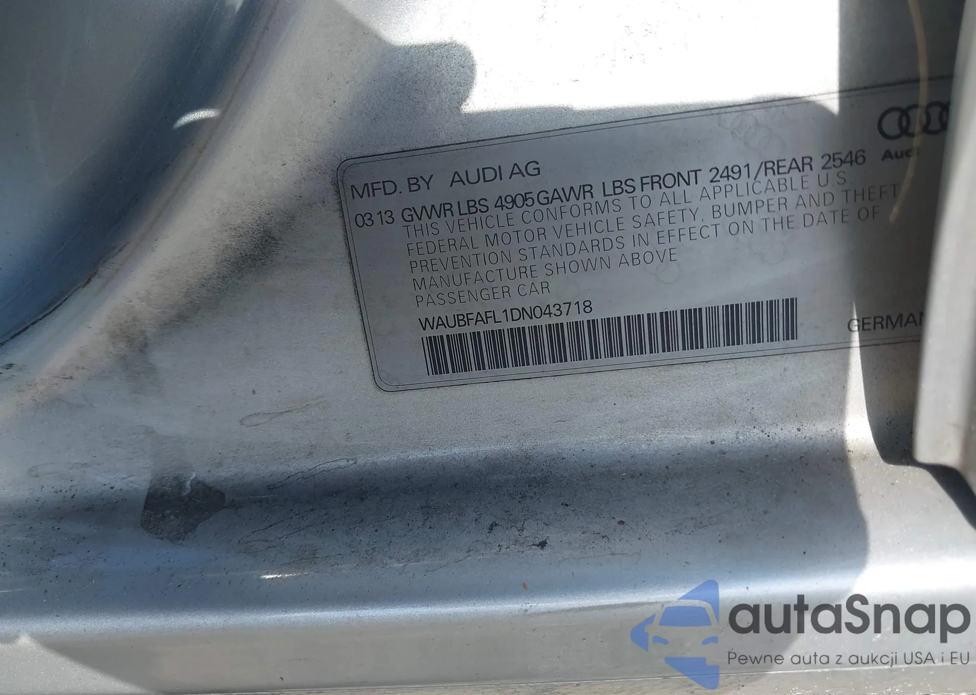 LOT: 42860404 VIN: WAUBFAFL1DN043718