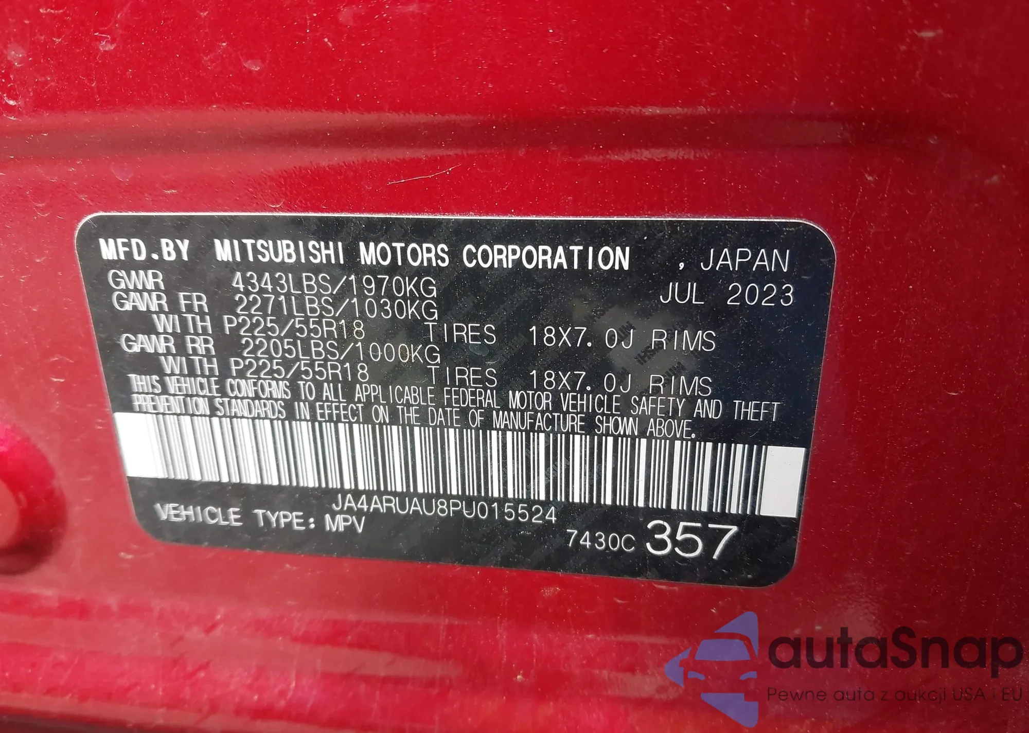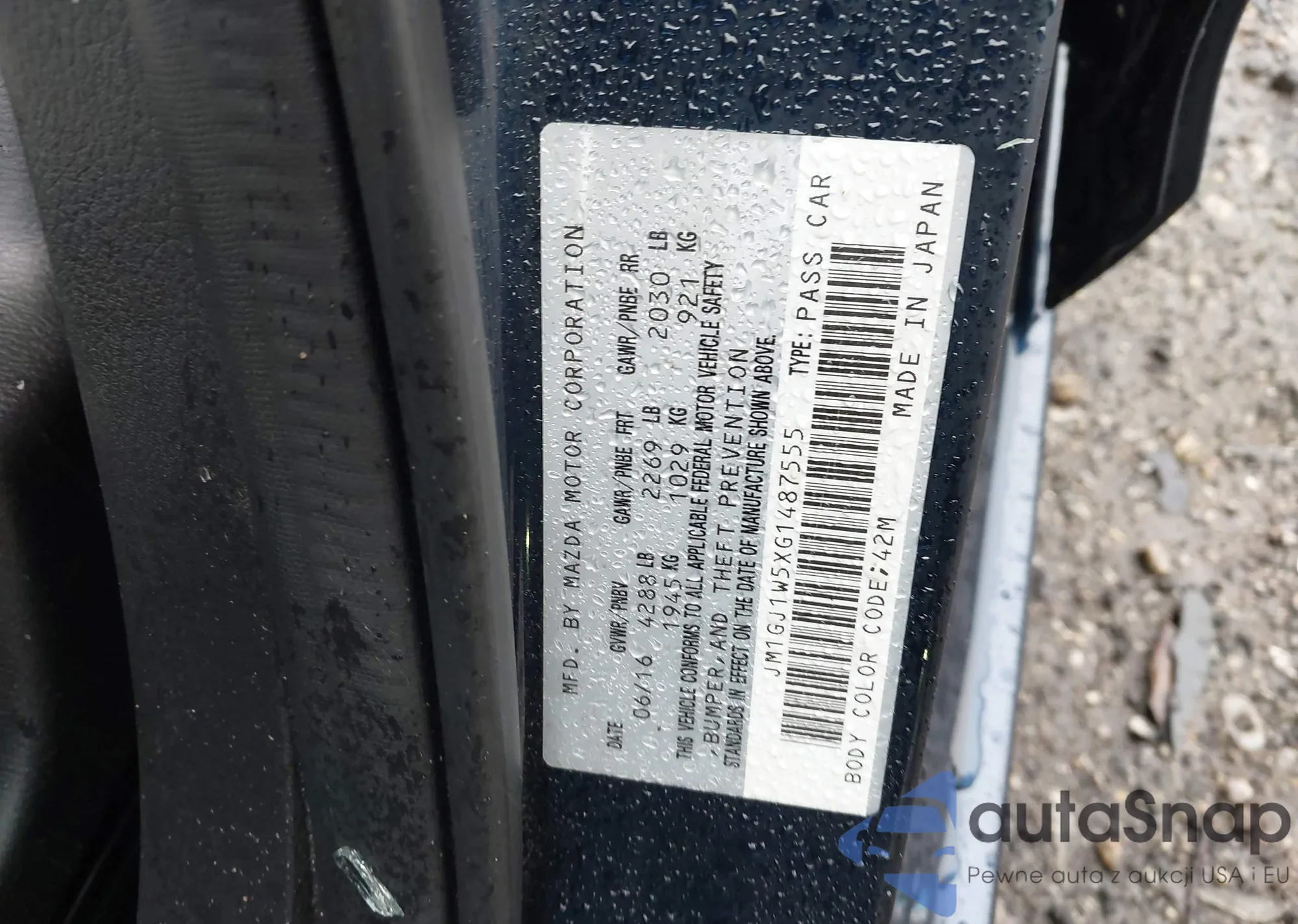 LOT: 42938057 VIN: JM1GJ1W5XG1487555