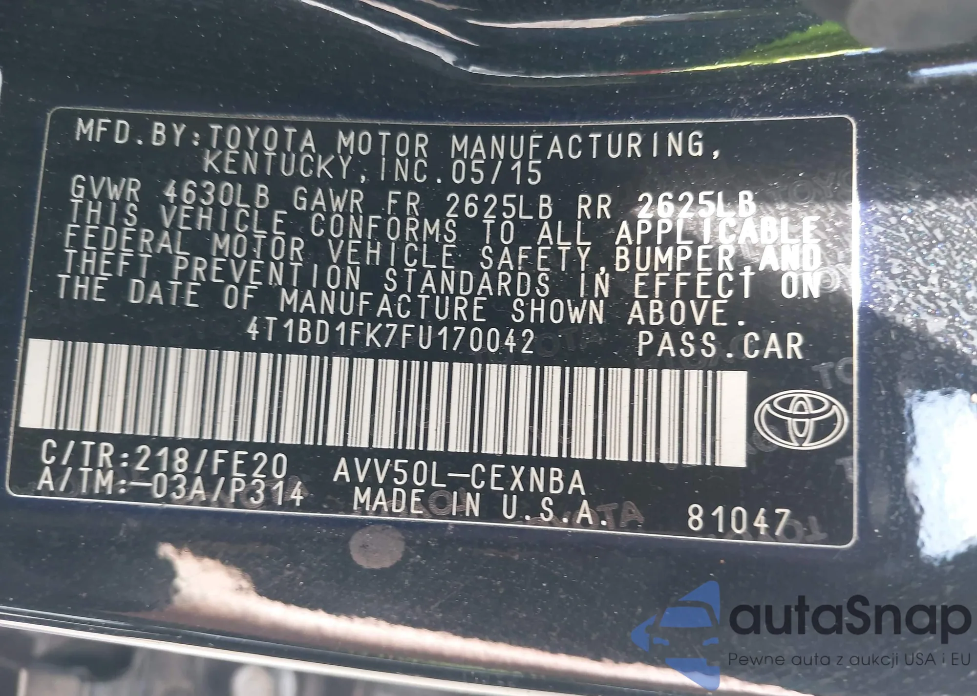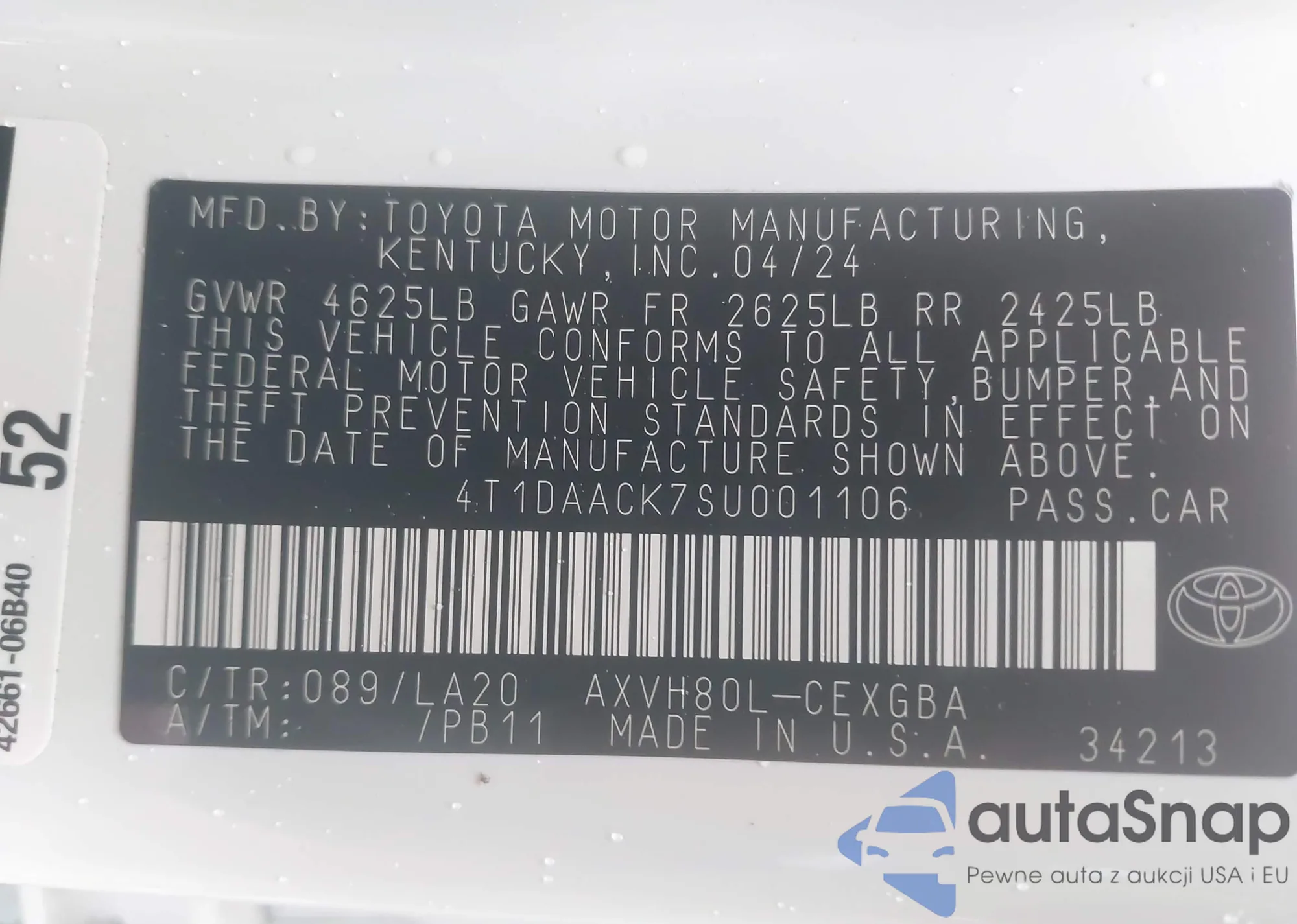 LOT: 42457761 VIN: 4T1DAACK7SU001106