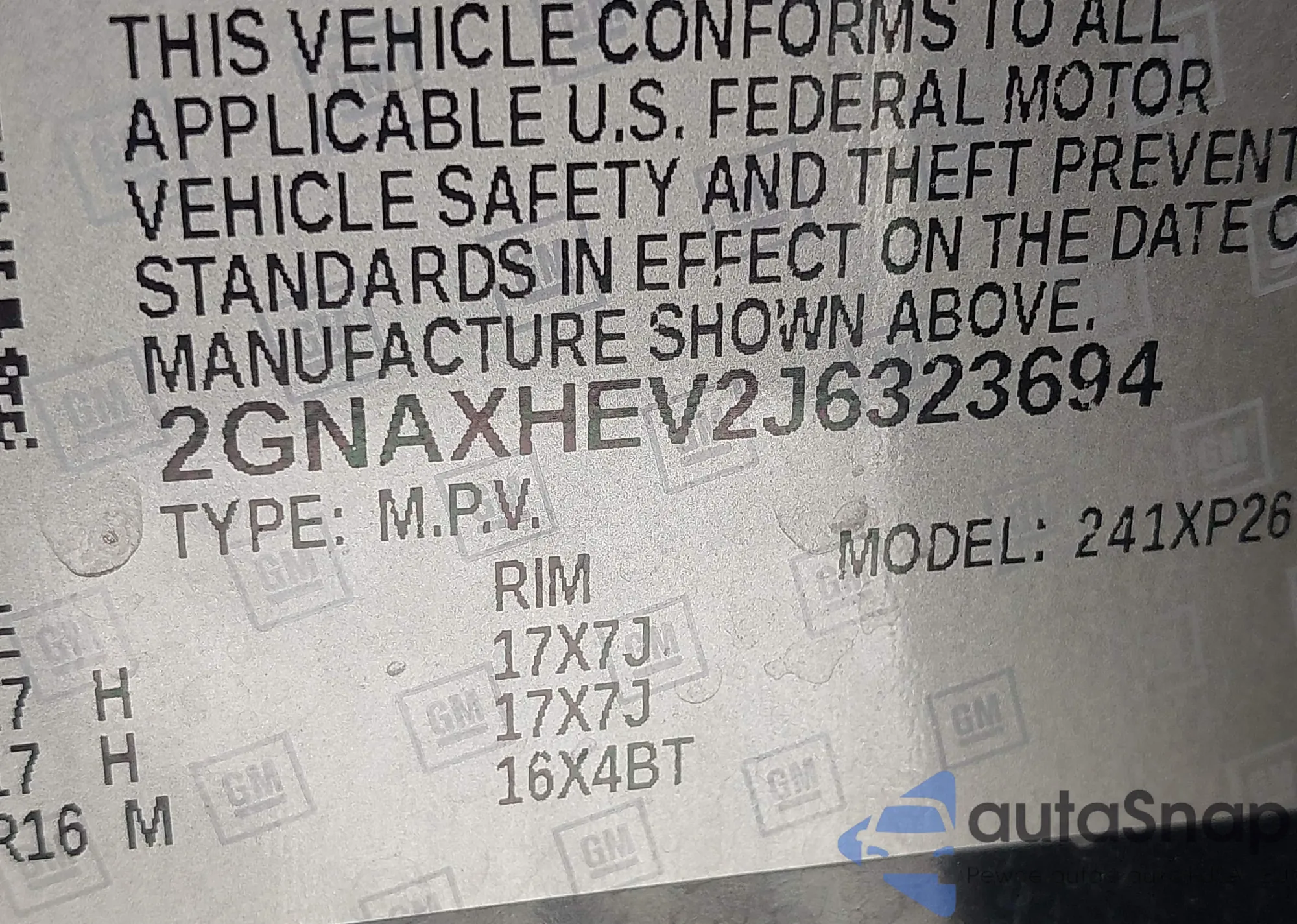 • VIN 2GNAXHEV2J6323694