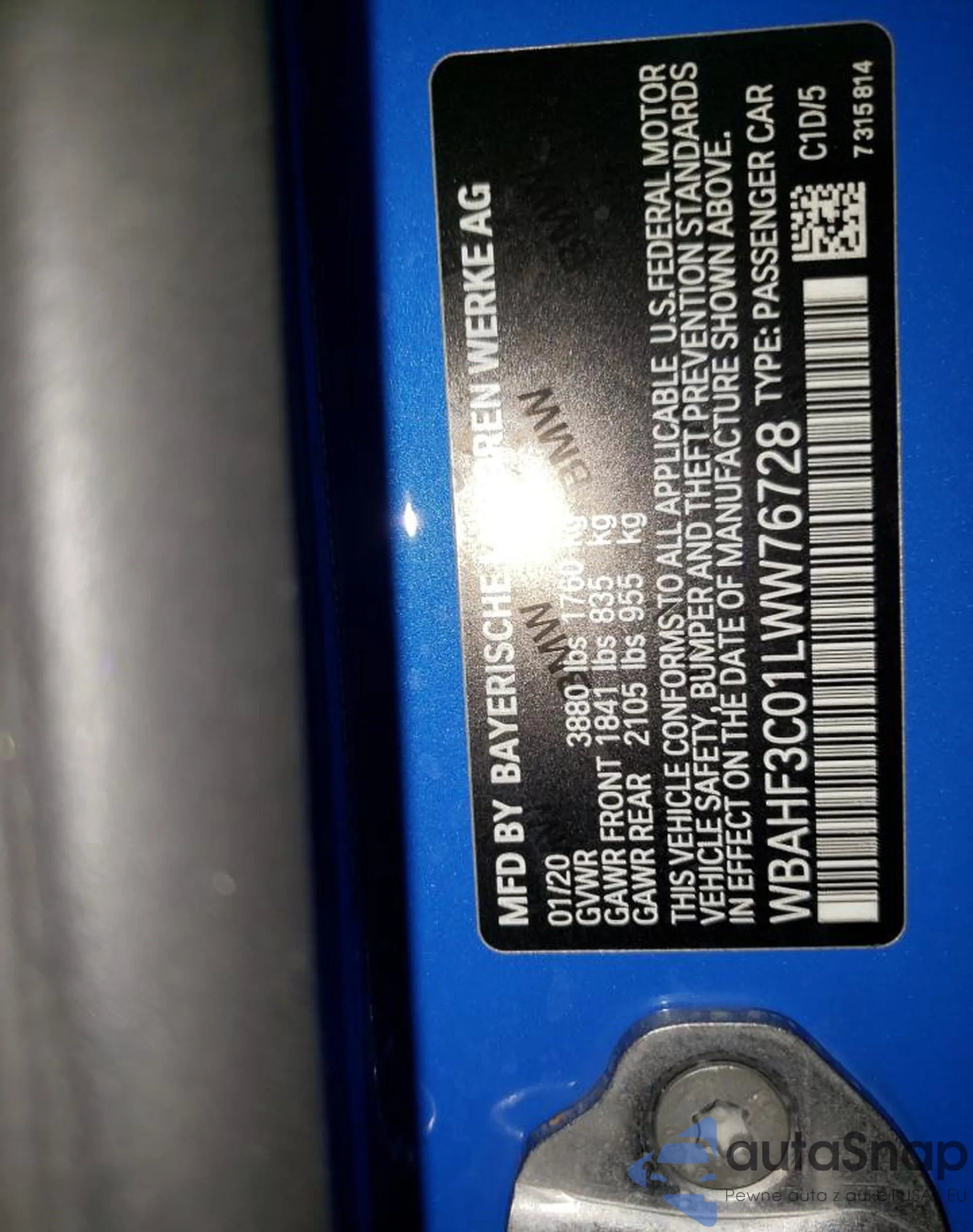 • VIN WBAHF3C01LWW76728